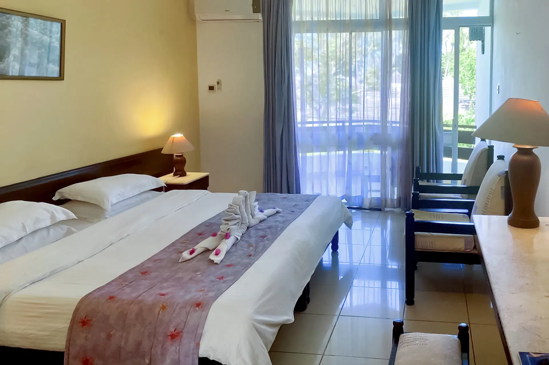 .24-hodinová recepcia, lobby, 2 reštaurácie: hlavná Acacia a a'la carte Frangipani. 3 bary: na pláži, snack bar Frangipani, bar Jacaranda. Hlavný bazén nepravidelného tvaru a menší bazén obklopený slnečnou terasou s ležadlami, slnečníkmi a osuškami k dispozícii zdarma. Tiež: konferenčná miestnosť, obchod so suvenírmi na pláži.