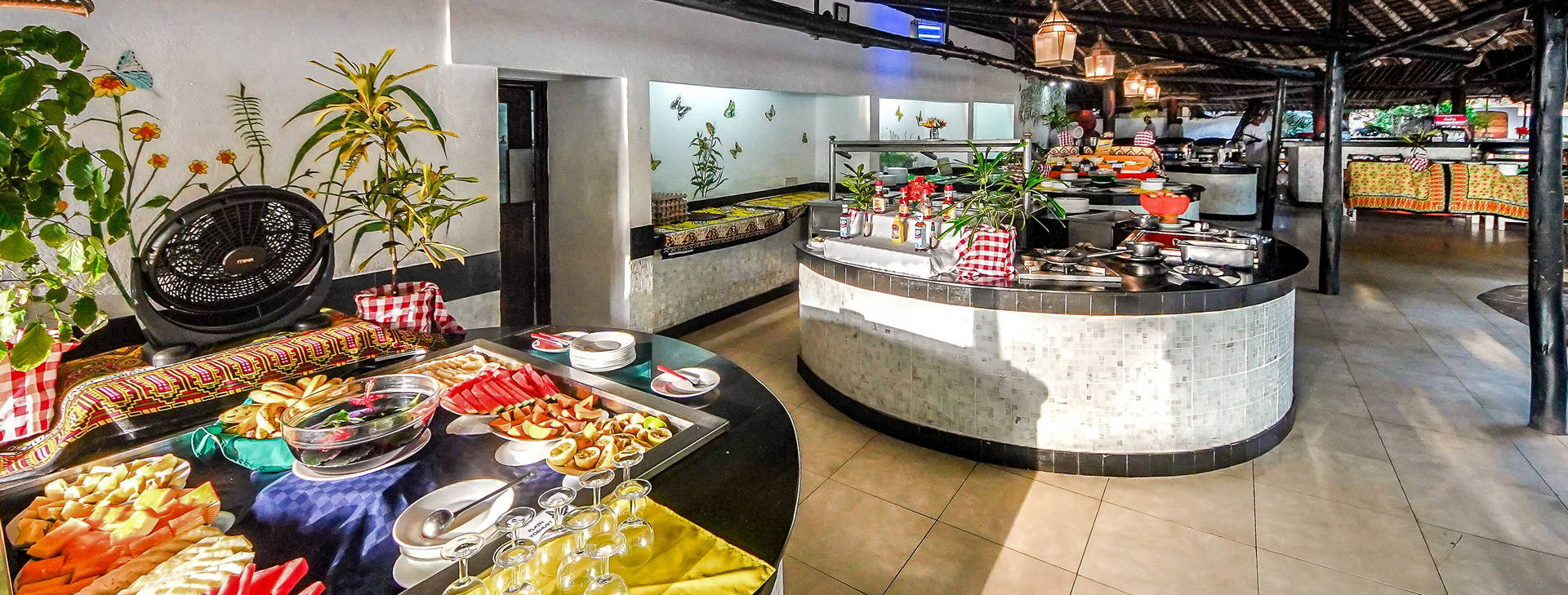 Hotel sa nachádza na južnom pobreží Mombasy, obklopený nádhernými palmami a fenomenálnymi storočnými baobabmi, ktoré sú domovom vzácnych živočíšnych exemplárov. Hotel je postavený v miestnom svahilskom štýle a pozostáva z 5 viacposchodových bungalovov rozmiestnených po celom hoteli. Najbližšie obchody sa nachádzajú v malej dedinke Diani, približne 3 km od hotela. Letisko Mombasa je vzdialené približne 50 km.