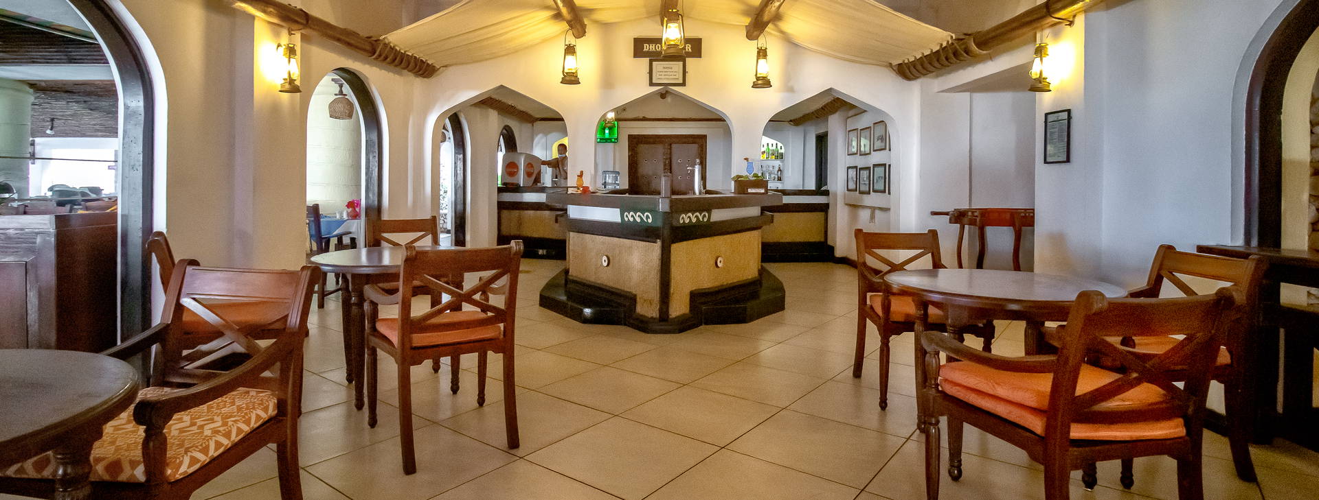 Recepcia, tri reštaurácie: hlavná reštaurácia Ziwani ponúka medzinárodnú kuchyňu, orientálna a vegetariánska reštaurácia a'la carte Karibu Grill podáva grilované mäso a ryby, reštaurácia a'la carte Fisherman 's Cave servíruje hlavne morské plody (špeciálne zľavy pre hotelových hostí). Štyri bary: hlavný bar Dhow otvorený 24 hodín denne, Karibu (10:00-23:30), Ziwani pri bazéne (10:00-23:30) a bar s občerstvením po celý deň. Dva bazény so sladkou vodou (jeden s jacuzzi) a detský bazén pre deti. Navyše: zmenáreň, TV miestnosť, obchod so suvenírmi, konferenčná miestnosť.