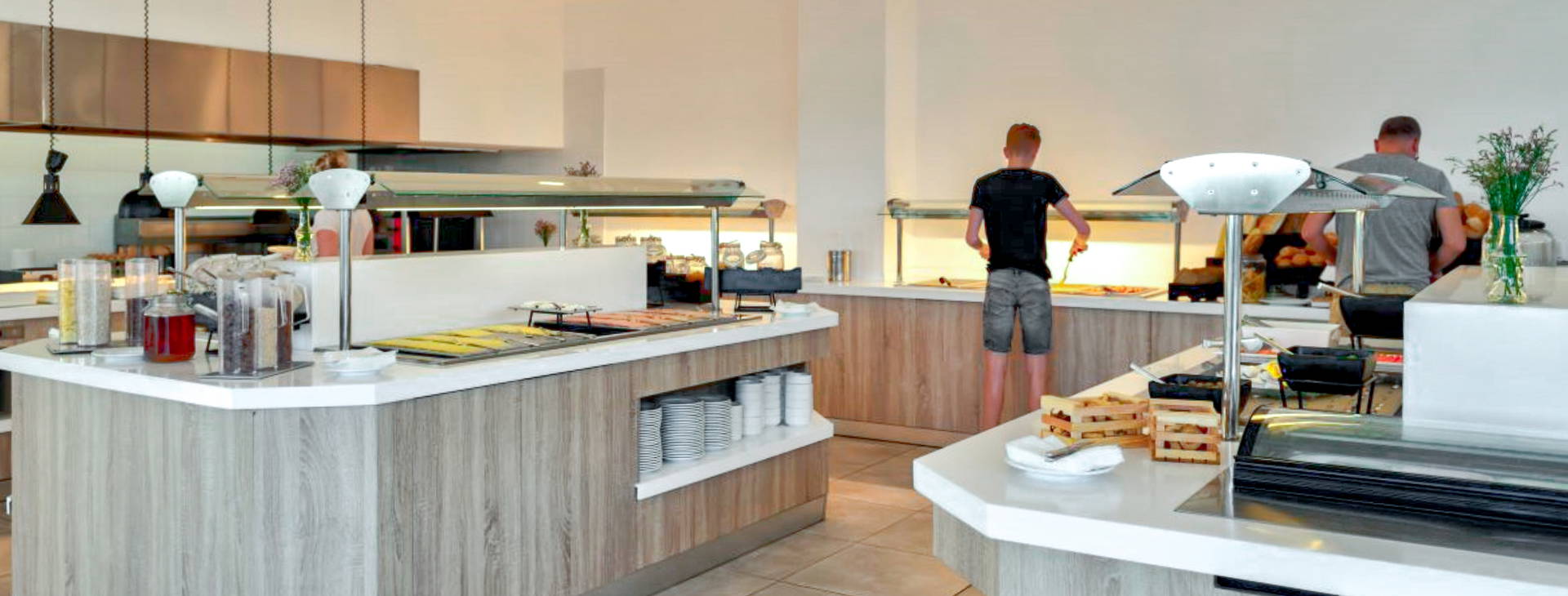 Jedálny lístok zahŕňa grécke a medzinárodné jedlá pripravené z miestnych produktov. Počas celého dňa je k dispozícii aj občerstvenie a nápoje. Každý deň je k dispozícii iné menu, ako aj živá kuchyňa pripravovaná profesionálnymi kuchármi.