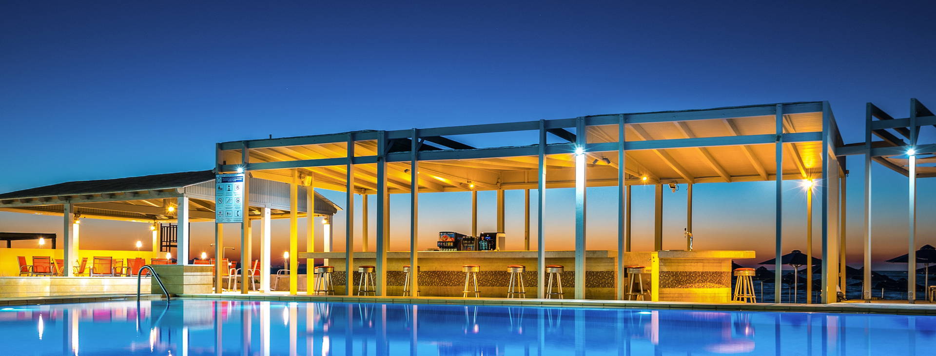 Hlavný bar - bar pri bazéne s kávou, čajom, džúsmi a inými nápojmi a kokteilmi (10:00-02:00, verzia all inclusive do 23:00).