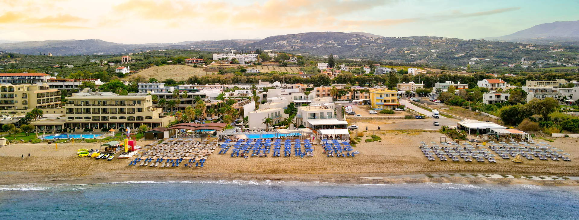 Štyrihviezdičkový hotel Adele Beach Hotel & Bungalows sa nachádza na piesočnatej pláži v historickom gréckom meste Rethymnon na severe Kréty. Je vzdialený približne 1 km od centra Platanes, približne 5 km od pôvabného Rethymna, približne 72 km od letiska Chania, približne 75,5 km od letiska Heraklion a približne 59 km od prístavu Souda. V blízkosti pláže Adele nájdete obchody, reštaurácie, taverny, cestovné kancelárie a iné.