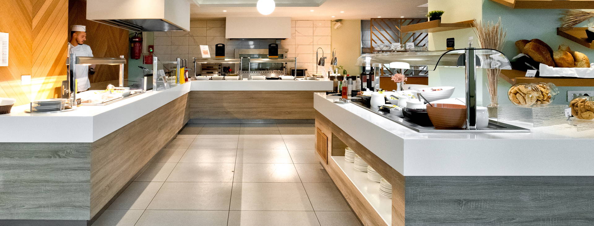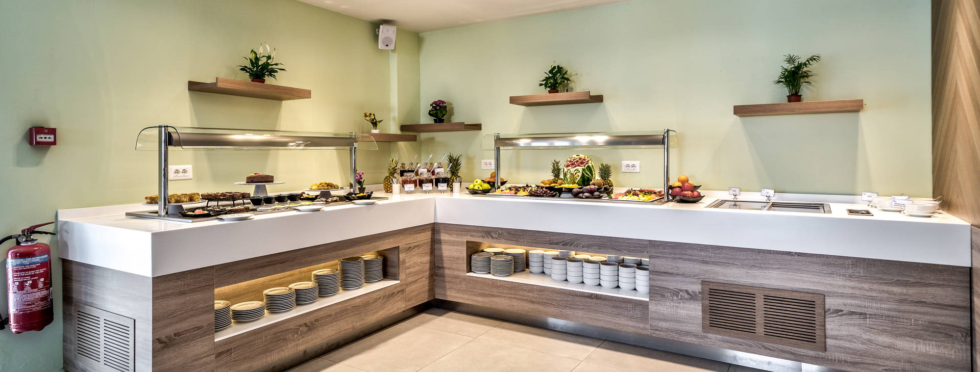 Hlavná reštaurácia ponúka grécku a medzinárodnú kuchyňu formou bufetu (raňajky 7:00-10:00, obed 12:30-14:30, občerstvenie 16:00-17:00, večera 18:30-21:30) s rôznymi kulinárskymi možnosťami, každý deň iné menu a živé varenie. Všetky jedlá formou bufetu zahŕňajú aj vegetariánske možnosti. Na večeru sa vyžaduje formálne oblečenie (dlhé nohavice pre mužov).