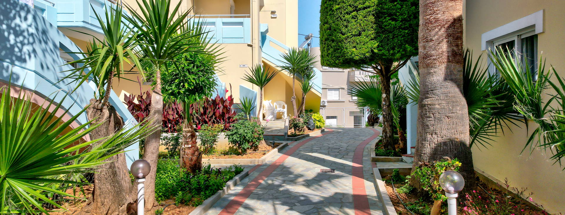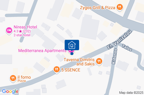 Objekt sa nachádza na kopci, v peknej záhrade, v pokojnej časti Kato Daratso, asi 4 km od centra mesta Chania. V blízkosti obchody a taverna; väčší výber zábavy v meste Chania (dobré spojenie miestnymi autobusmi - autobusová zastávka je vzdialená asi 70 m od bytov).