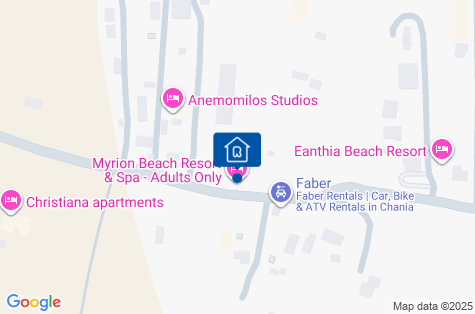 Myrion Resort & SPA je nový hotel postavený len v roku 2021, pozostávajúci z niekoľkých budov obklopených zeleňou, na malebnom a pokojnom mieste. Nachádza sa priamo na pláži, 13 km od centra mesta Chania a 30 km od letiska Chania. Autobusová zastávka je vzdialená 650 m.