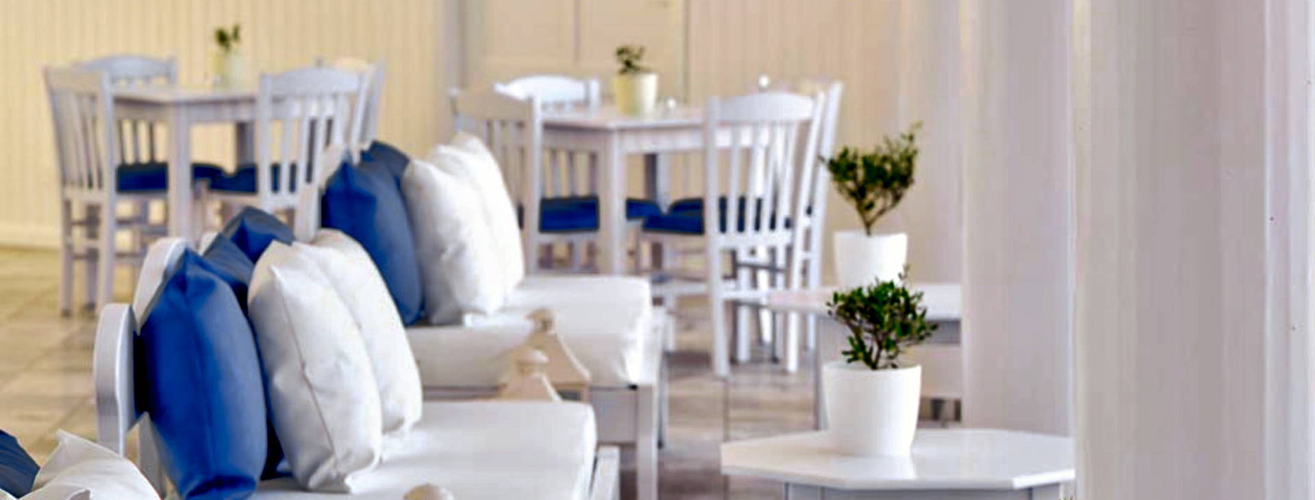 Hotel ponúka reštauráciu AMVROSIA, ktorá podáva jedlá gréckej a medzinárodnej kuchyne. Raňajky sa podávajú formou bufetu od 8:00 do 10:30, obed pozostávajúci z dvoch šalátov a jedného z dvoch hlavných jedál podľa vlastného výberu sa podáva od 12:30 do 14:00. Večera sa podáva a'la carte (trojchodové menu s výberom z dvoch hlavných jedál) alebo formou bufetu od 18:30 do 21:00, v závislosti od počtu hostí. V reštaurácii sa podáva aj večera formou bufetu. Lobby bar pani Chryssan, kde si hostia môžu vychutnať kompletnú ponuku alkoholických a nealkoholických nápojov.