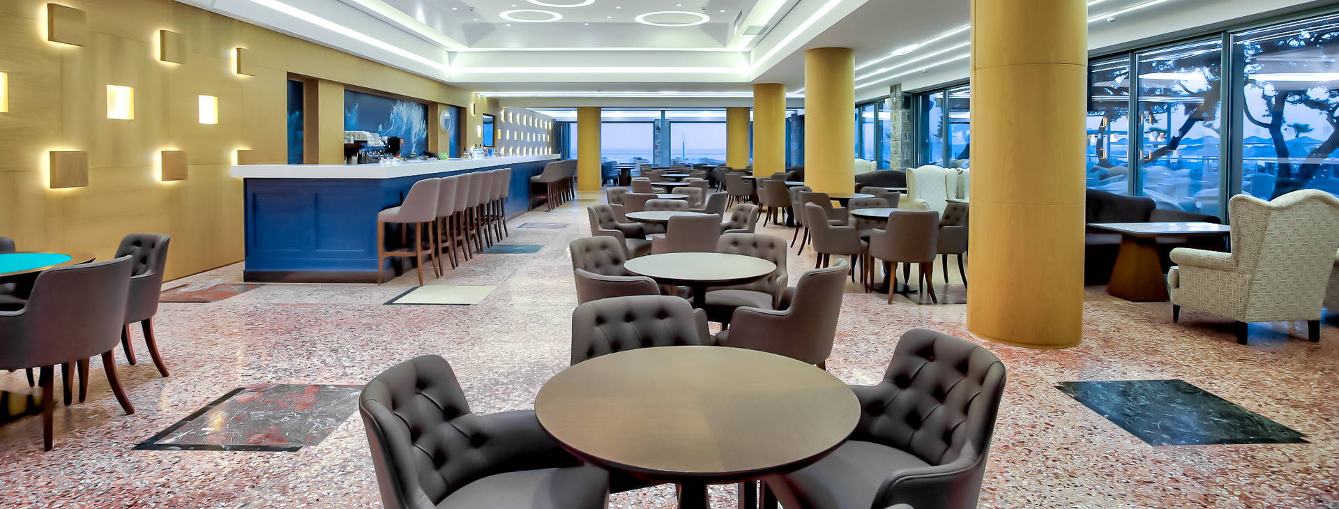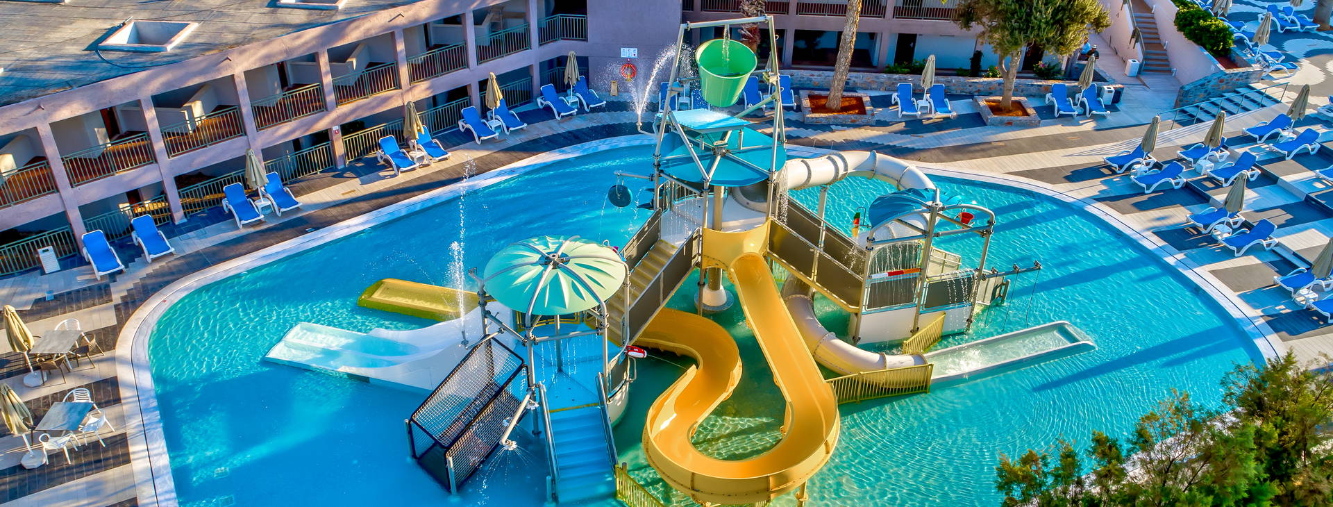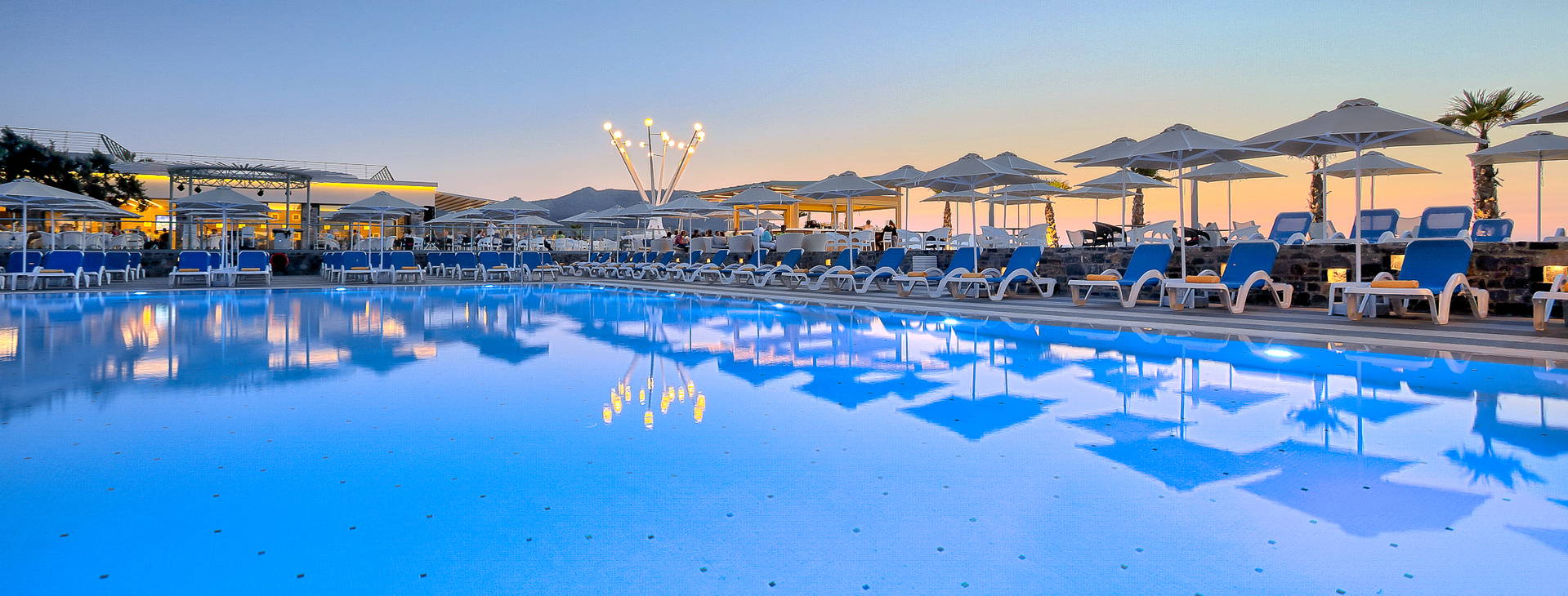 Concierge, priestranná vstupná hala, 5-podlažná hlavná budova a 4 dvojpodlažné vedľajšie budovy, výťah v každej budove, hlavná reštaurácia Ariadne, a la carte reštaurácia Minos s ázijskou kuchyňou, 3 bary, minimarket, TV kútik, zmenáreň, úschovňa batožiny, hlavný bazén s morskou vodou, detský bazén so splash zónou, bezplatné slnečníky a ležadlá pri bazénoch, parkovisko.