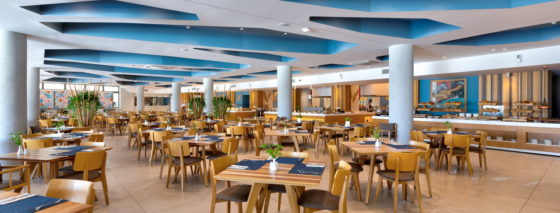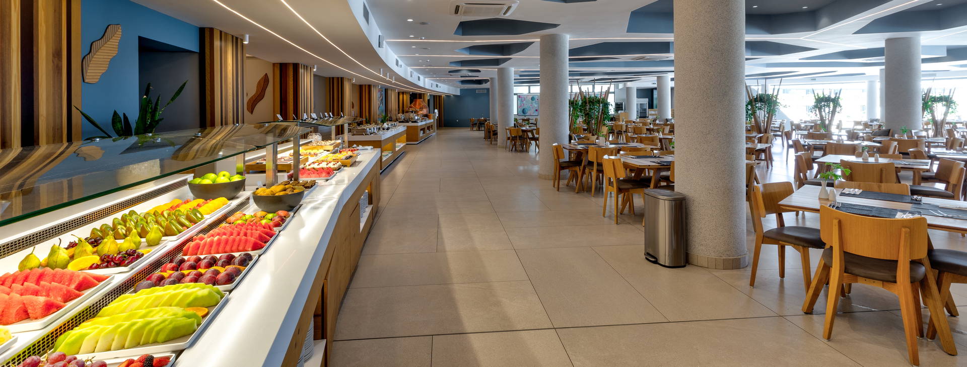 All inclusive: skoré raňajky (05:30-07:30), americké raňajky formou bufetu (07:30-10:30), obed/obed (12:30-14:30), večera (18:30-21:30) podávané v hlavnej reštaurácii, snack bar 11:00-18:00.