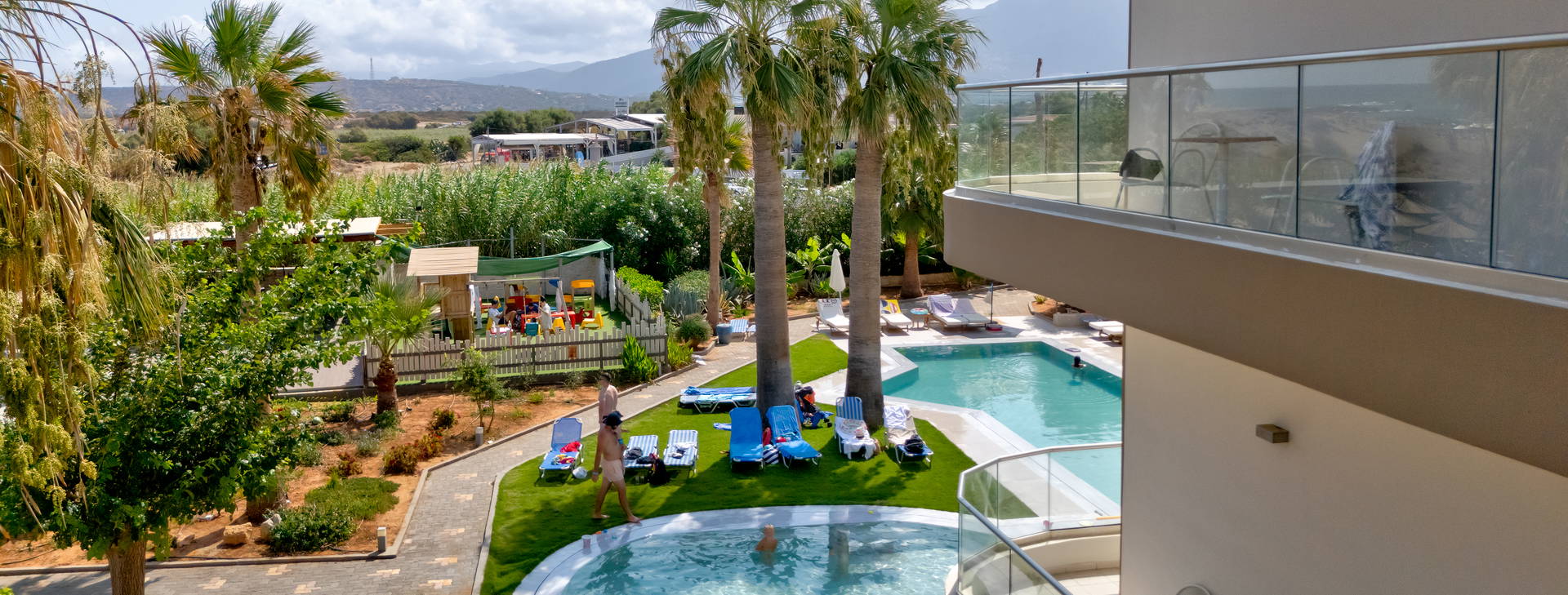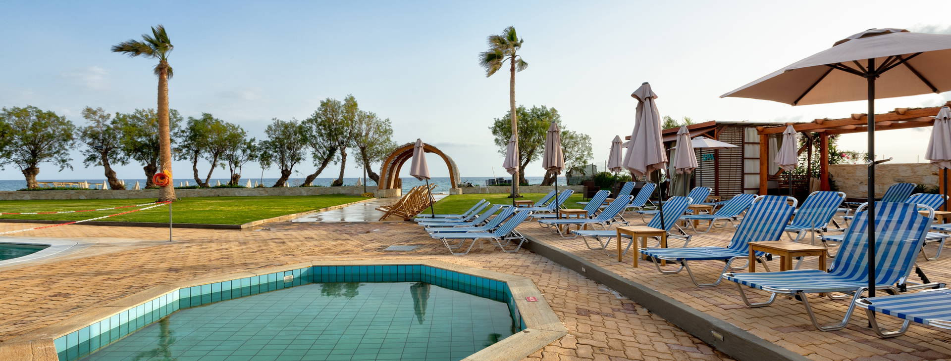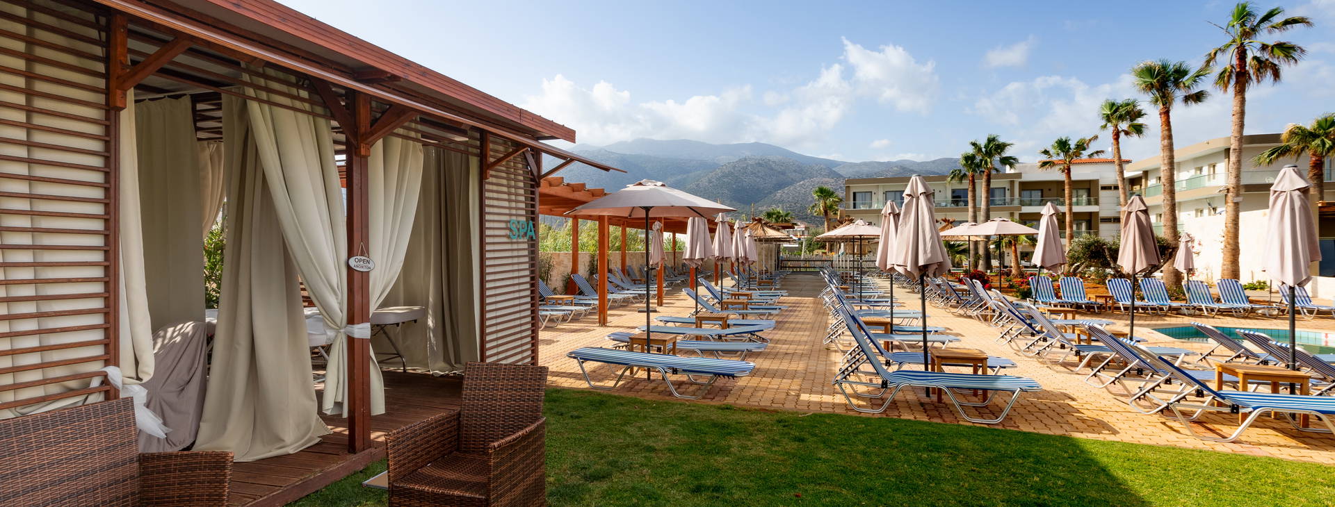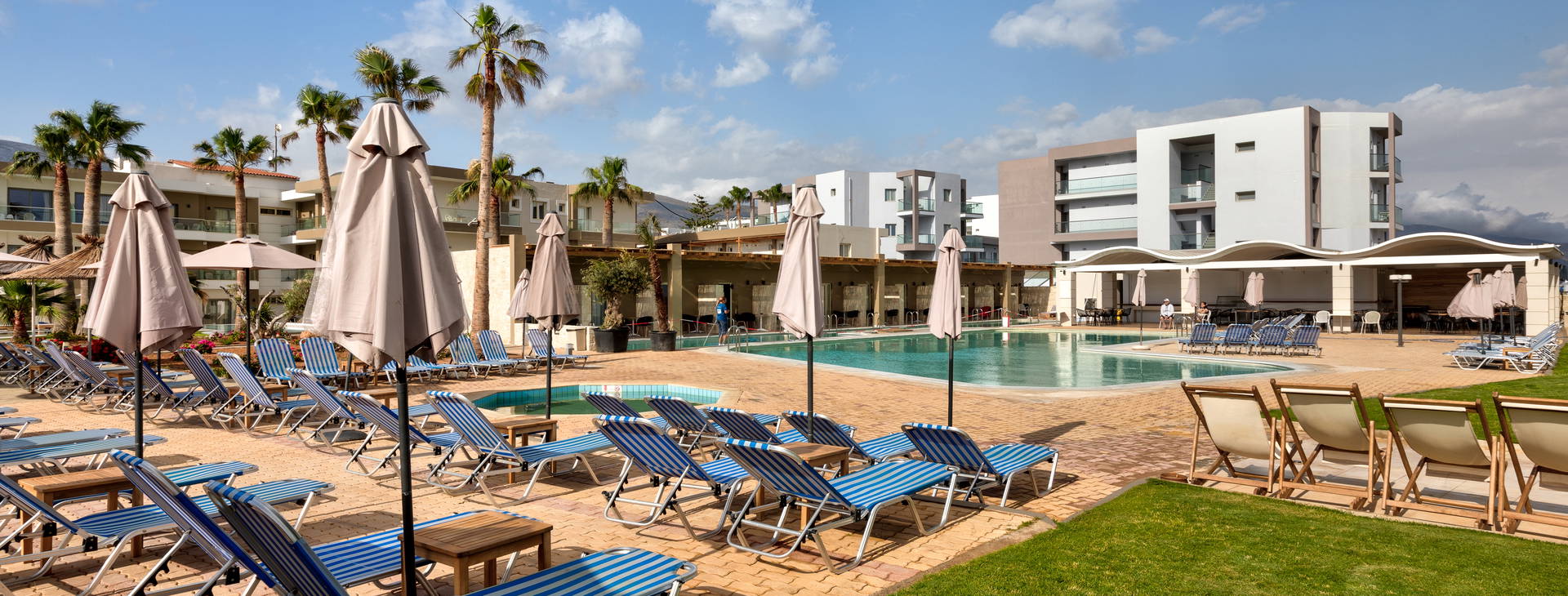 Hosťom sú k dispozícii štyri bazény pre dospelých a detský bazén s bezplatnými ležadlami a slnečníkmi. V altánku pri bazéne sa navyše nachádza kúpeľné masážne centrum, ktoré ponúka rôzne procedúry.