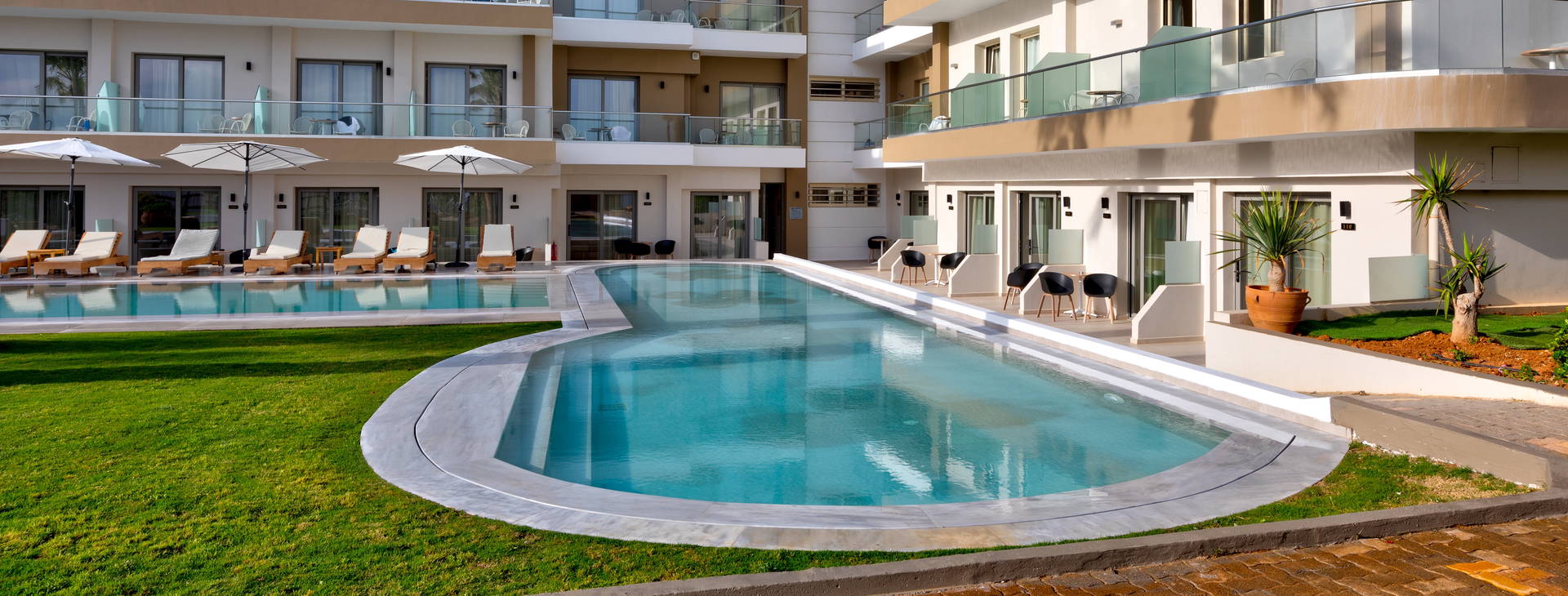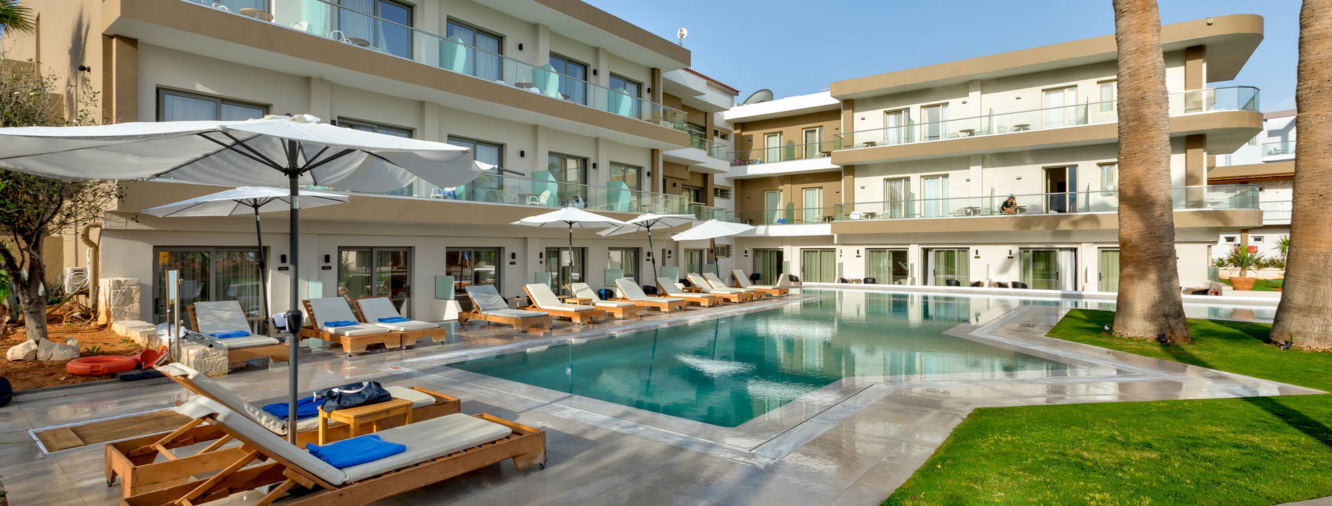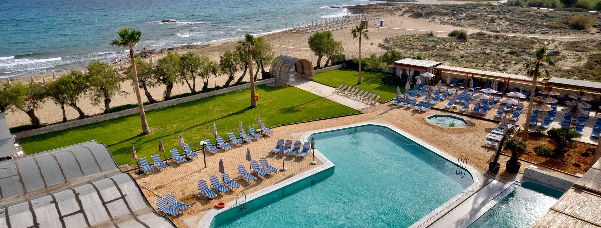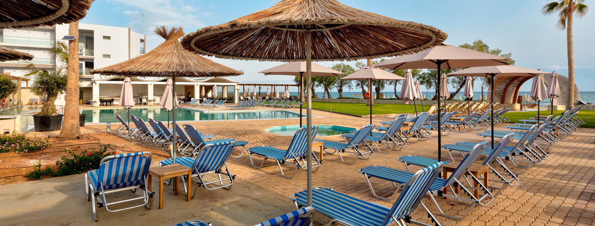 Rezidencia sa nachádza priamo na piesočnatej pláži so skalnatým zostupom do mora, ktorá je ideálna na ľahké plávanie a šnorchlovanie. Pláž je plne vybavená ležadlami a slnečníkmi, ktoré sú k dispozícii za príplatok.