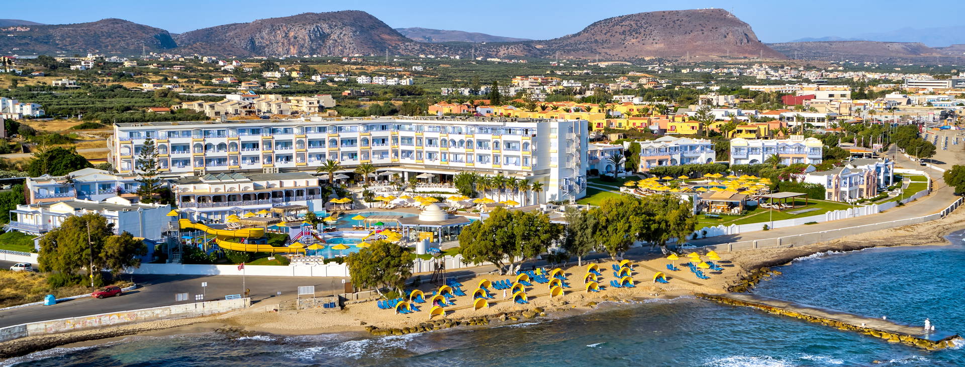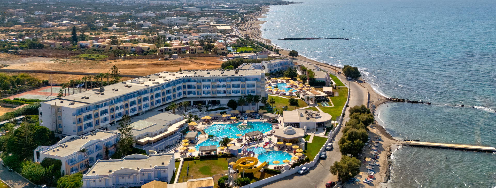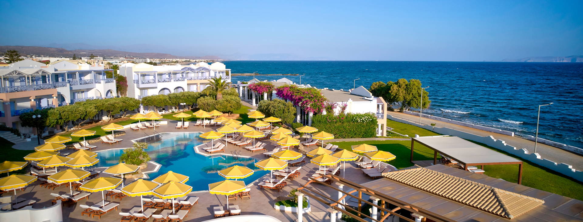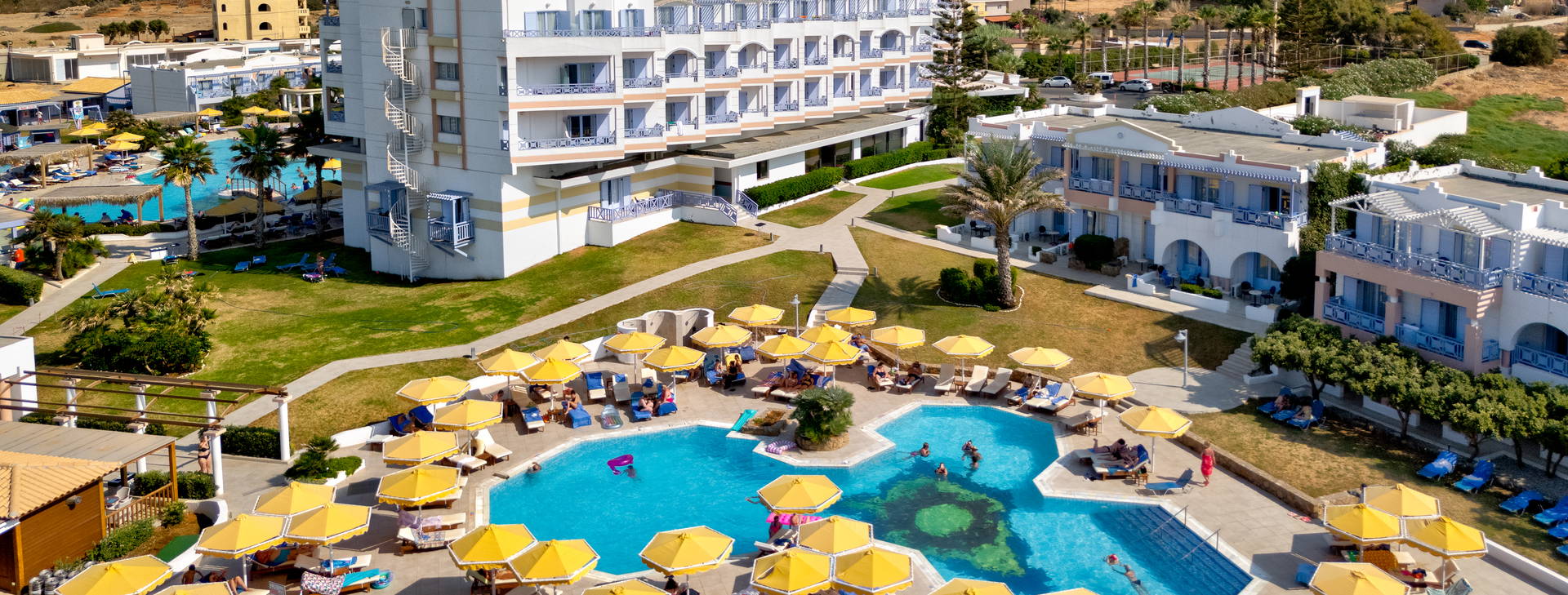 Luxusný hotel sa nachádza v pokojnej oblasti, len 3 km od najzábavnejšieho letoviska na východnom pobreží - Hersonissos. V starom meste Hersonissos (asi 3,9 km od hotela) však môžete obdivovať uličky a nakupovať ručne vyrábané suveníry. Mesto Heraklion je vzdialené približne 23 km. Vzdialenosť od autobusovej zastávky cca 2 km, od letiska Heraklion cca 22 km. Na medzinárodné letisko v Chanii cca 169 km.