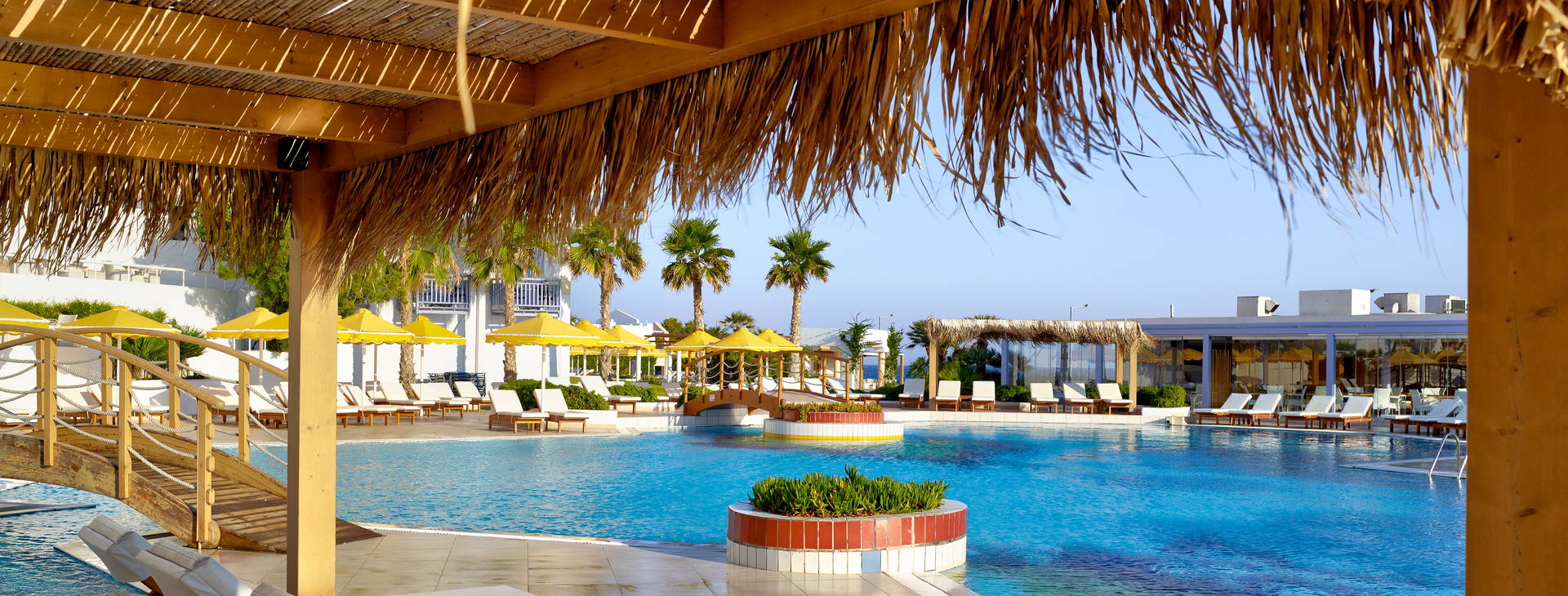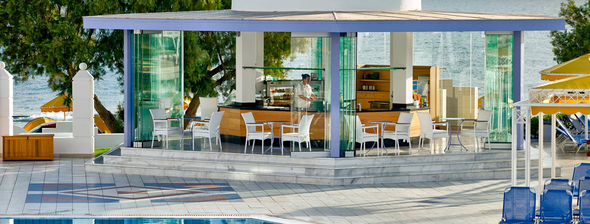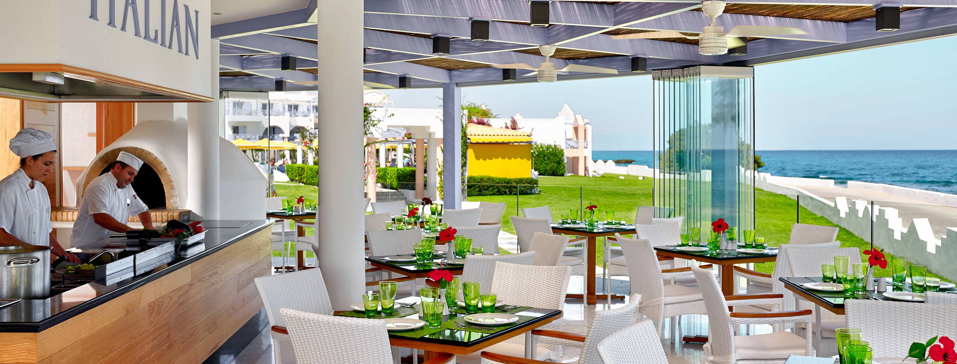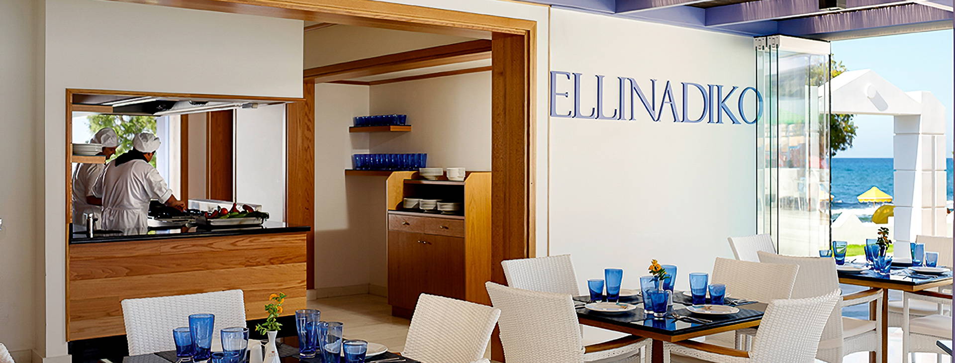 Restaurácia ELLINADIKO: Objavte tradičné grécke občerstvenie - mezzes! Večera sa podáva od 18:30 do 21:30 pre hostí, ktorí hľadajú pestrý výber mimo hlavnej reštaurácie formou bufetu. Rezervácia je potrebná 2 dni vopred, raz za pobyt.
