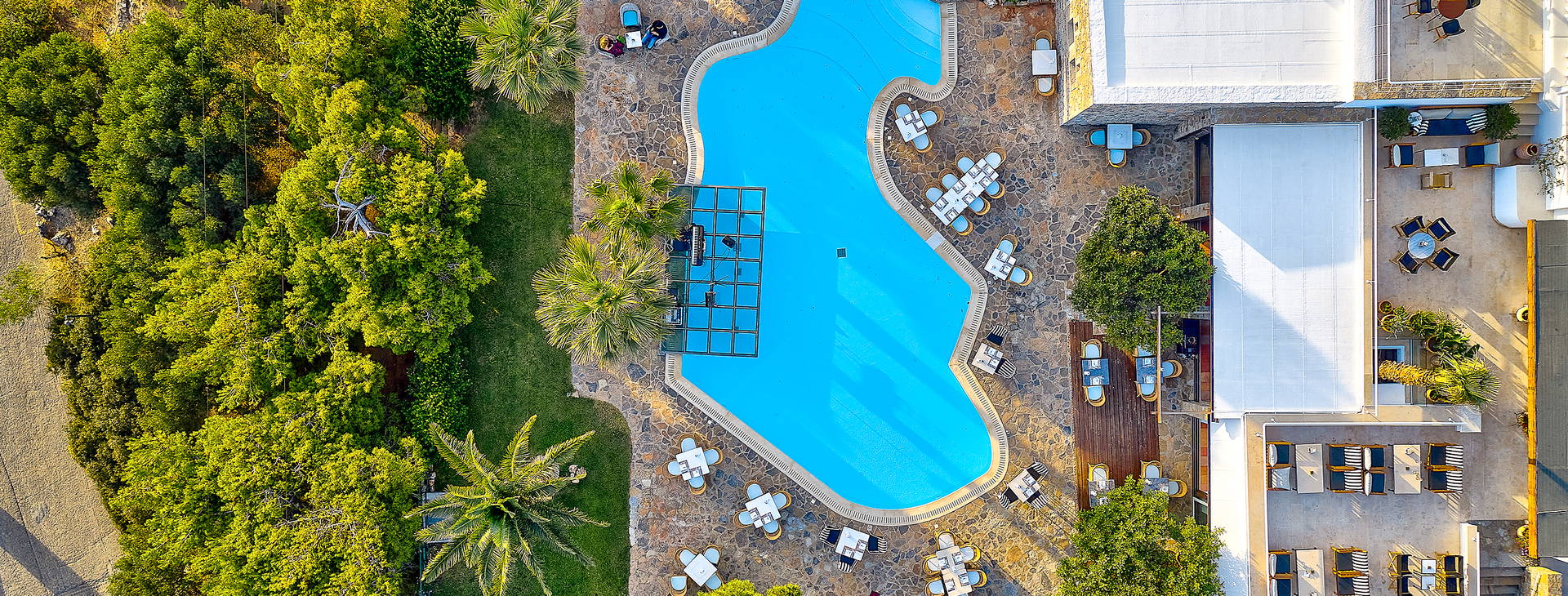 .Registrácia 24 hodín denne, vonkajší bazén s morskou vodou, detské brodítko s morskou vodou, záhrada, reštaurácia Club House a Labyrinthos. Za poplatok: koktail bar, bar pri bazéne a na pláži, kúpele, wellness centrum, butik, kaderníctvo, kozmetický salón, práčovňa, obchod so suvenírmi.