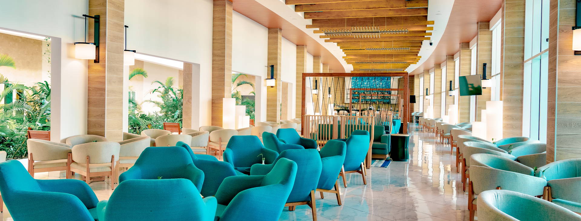 All Inclusive zahŕňa: raňajky (7:00-10:00), obed (13:00-15:00), večeru (18:00-22:00) podávané v bufetovej reštaurácii La Ola. Snack bar La Terraza ponúka široký výber jedál a nápojov. V baroch Aqua Arrecife a La Duna Beach Bar sa podávajú miestne alkoholické a nealkoholické nápoje od 10:00 do 18:00. Jazz bar je otvorený od 18:00 do 01:00 a ponúka miestne alkoholické a nealkoholické nápoje v sprievode živej hudby vo vstupnej hale, zatiaľ čo bar Saoco uprostred tropickej záhrady je otvorený 24 hodín denne. Večer sa vyberte do elegantných a'la carte reštaurácií na talianske, ázijské a kubánske špeciality (Puntamare, Chiang a La Caleta), ktoré sú otvorené od 18:00 do 22:00. Na najvyššom poschodí hotela sa nachádza reštaurácia Sky Blue s panoramatickým výhľadom, kde sa podávajú jedlá medzinárodnej kuchyne. Reštaurácie a'la carte si musíte vopred rezervovať a zaplatiť za ne príplatok.