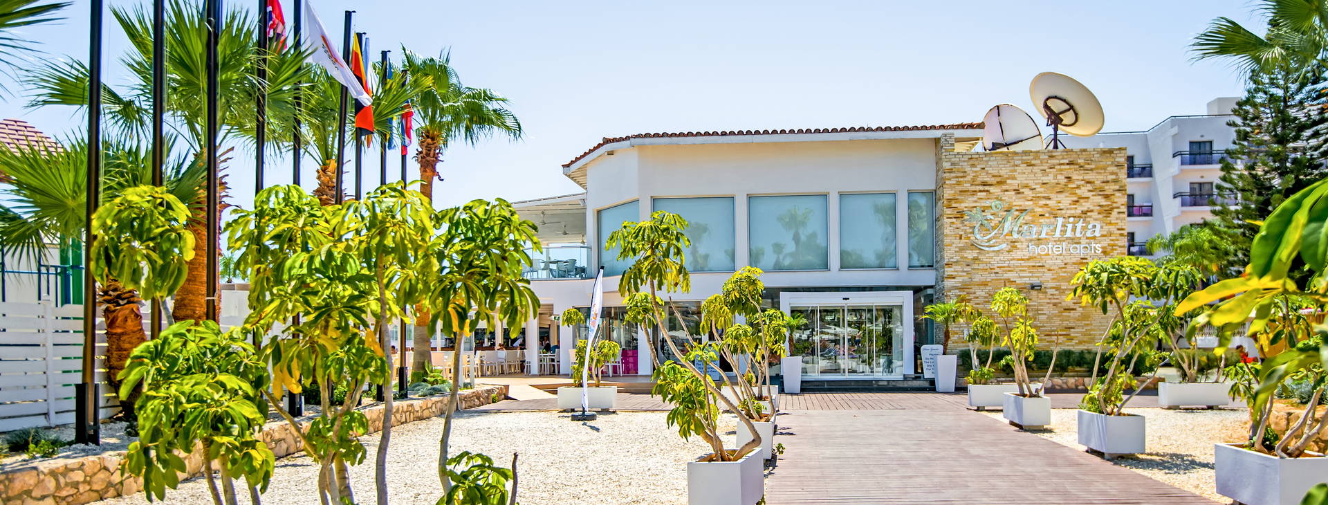 Vysokokvalitný komplex pozostávajúci z hotelov Marlita a Anastasia (nachádzajúcich sa blízko seba vo veľkom hotelovom areáli); po rozsiahlej rekonštrukcii v zime 2016/2017. - Kvalita zaručená vysoko cenenou sieťou hotelov Tsokkos. Hotel sa nachádza v niekoľkých budovách pri (cca 70 m) piesočnatej pláži, na východnom pobreží južného Cypru v Protarase, známom a obľúbenom letovisku, neďaleko promenády, ktorá sa tiahne pozdĺž pobrežia (jej začiatok cca 500 m od hotela). Do centra Protarasu sa môžete prejsť po promenáde (cca 2 km), najbližšie bary, kaviarne a obchody sú vzdialené cca 150 m. Neďaleko hotela (cca 150 m) sa nachádza autobusová zastávka, odkiaľ premávajú autobusy do centra Protarasu a Ayia Napy (najväčší počet diskoték a klubov na Cypre !) . Letisko v Larnake je vzdialené približne 60 km.