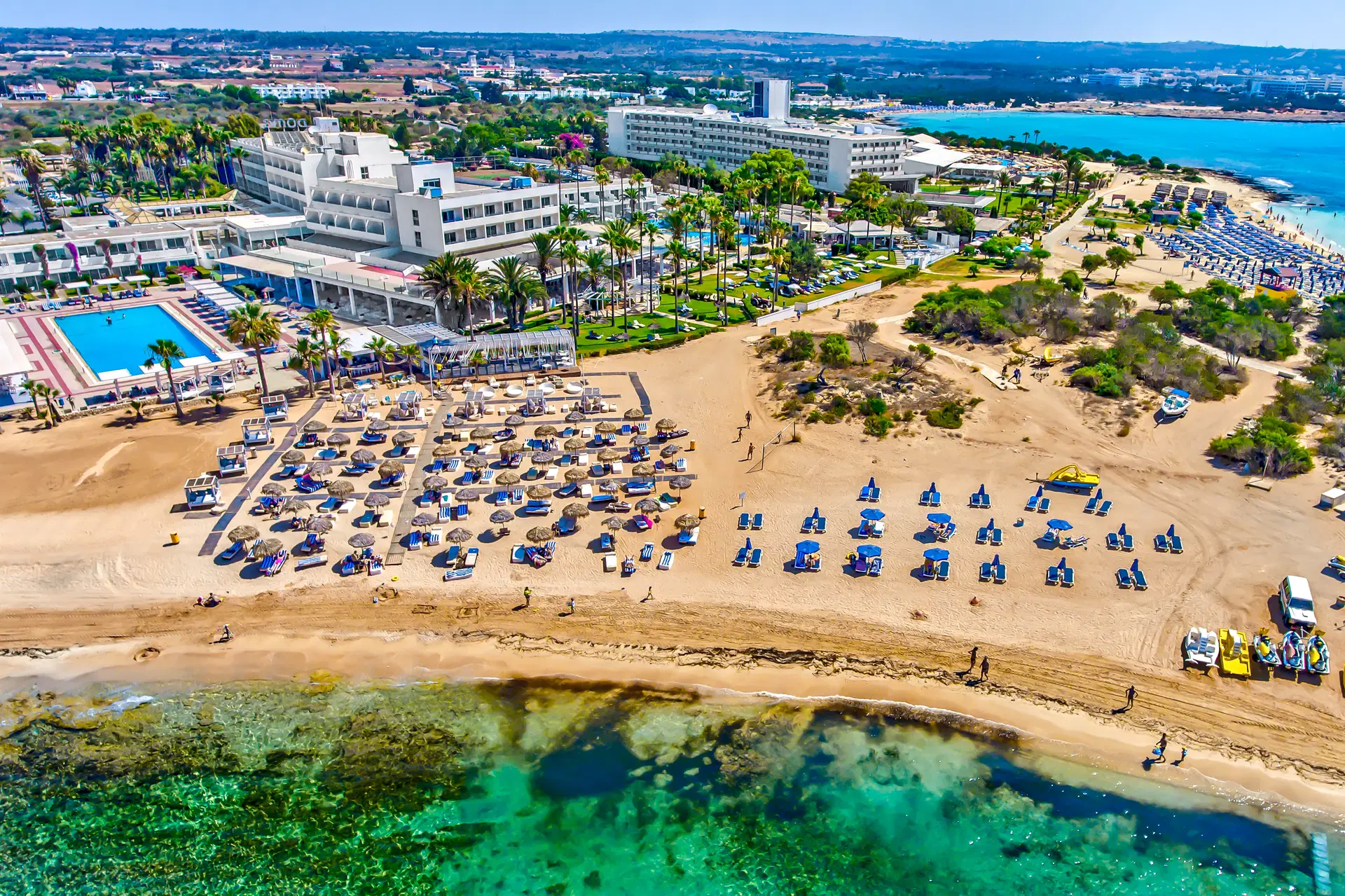 Exkluzívny hotel zrekonštruovaný v roku 2015 sa nachádza približne 3 km od centra dedinky Ayia Napa, na malom piesočnom ostrove. Približne 1,5 km od hotela sa nachádza obľúbený vodný park Water World. Letisko Larnaka je vzdialené približne 50 km. Najbližšia autobusová zastávka sa nachádza približne 700 m od hotela.