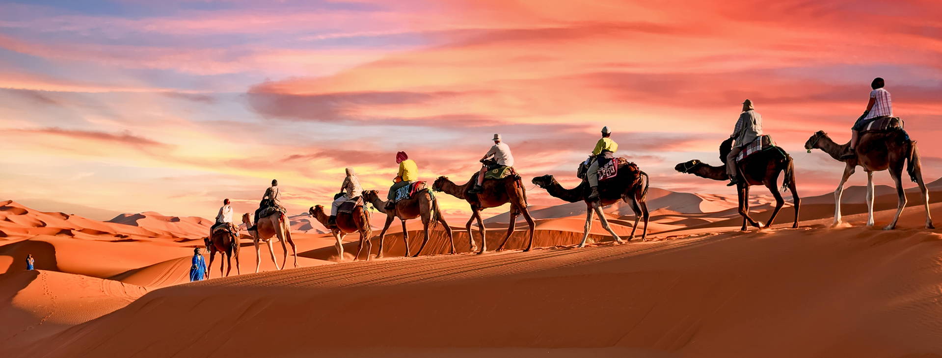Západ slunce na Sahaře - projížďka na velbloudech - filmové studio Atlas Studios -Taroudant a Ouarzazate - Ksar Ait Benhaddou - soutěska Todra a údolí Draa - Cesta tisíce kaskád - Marrákeš - Rudé město - týdenní pobyt v Agadiru pro zájemce, kteří chtějí navštívit město