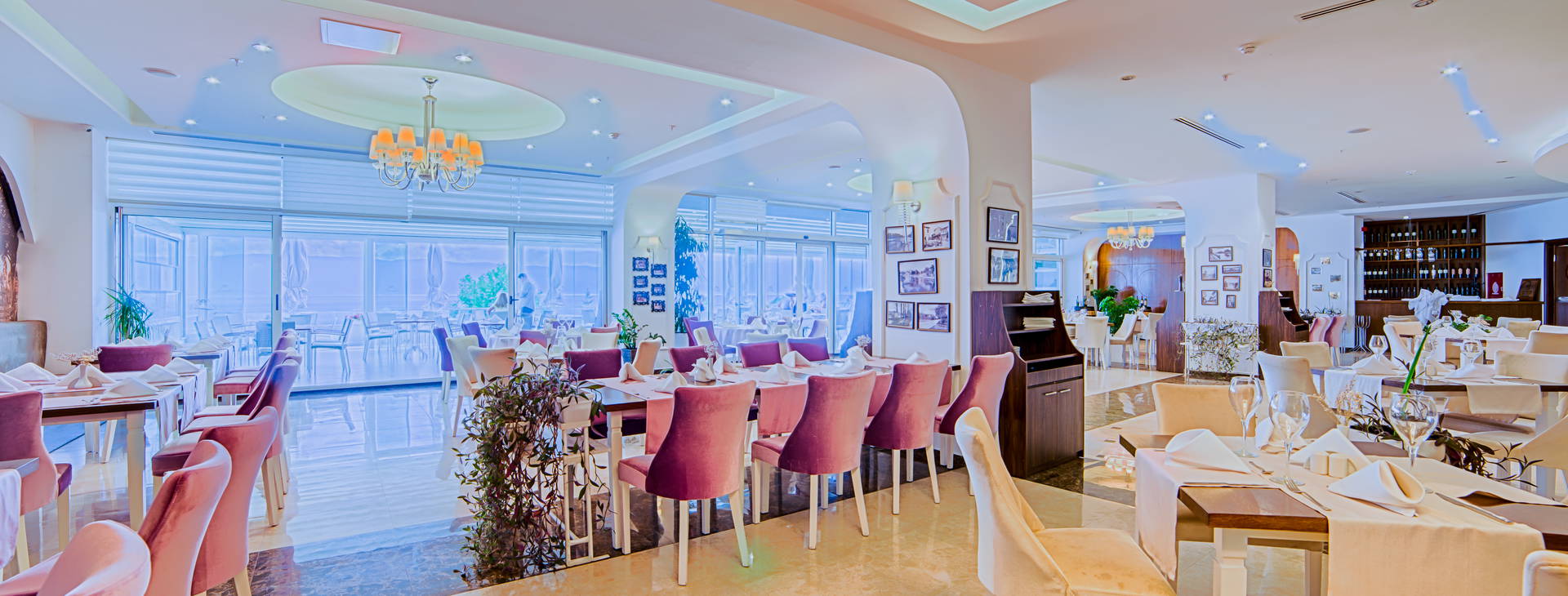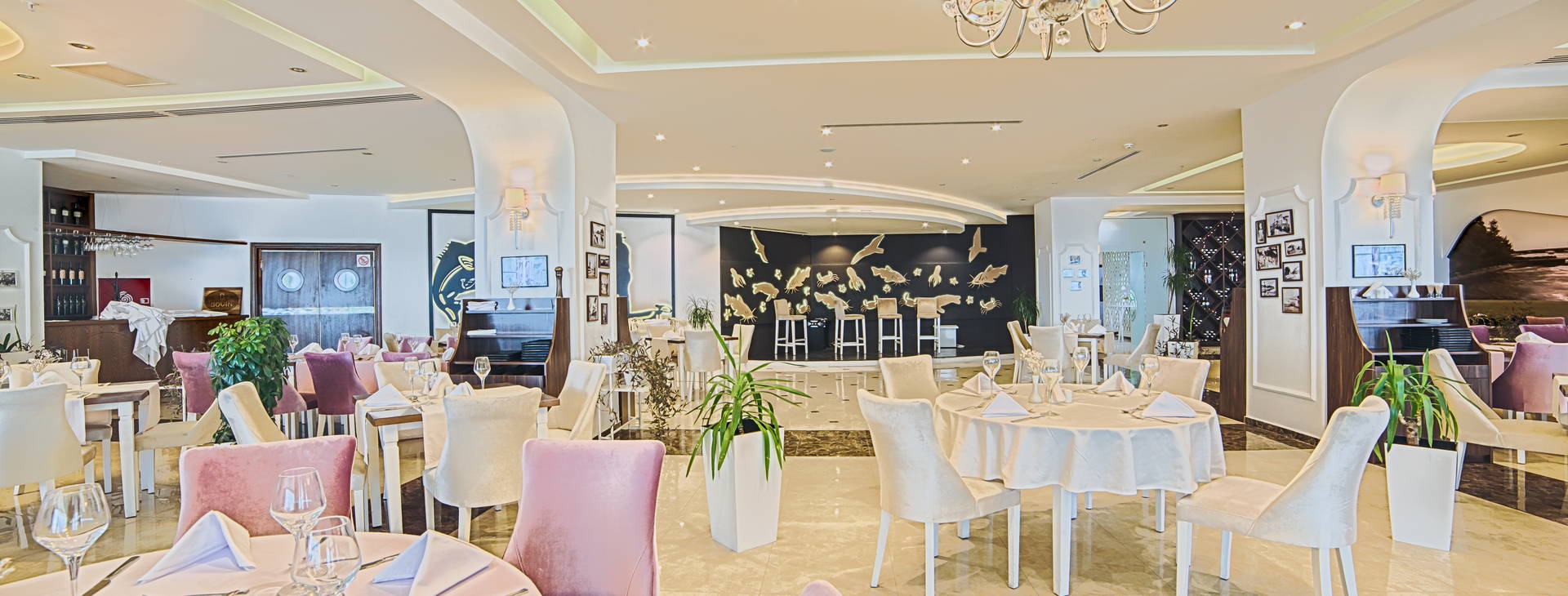 Raňajky formou bufetu (07:00 - 10:00), večera za príplatok (19:00 - 21:30; nápoje k večeri sa účtujú osobitne, jedlá formou bufetu). K dispozícii je aj reštaurácia a'la carte (za príplatok; obložené misy) otvorená na obed (13:00-14:00) a večeru (19:00-21:30).