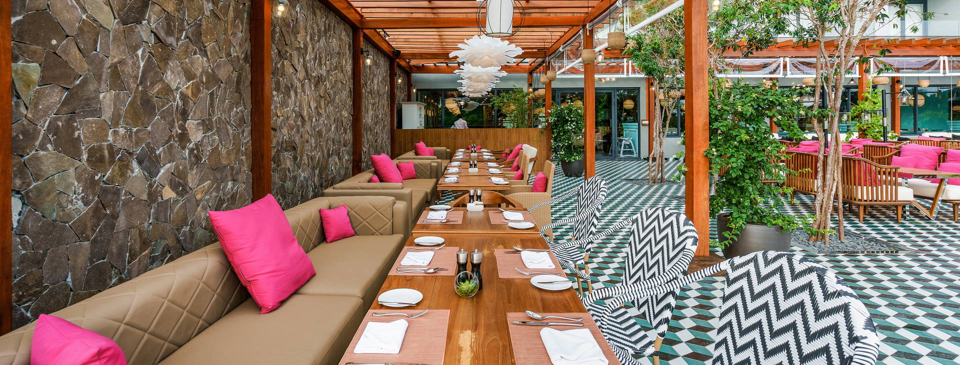 Raňajky sa podávajú formou bufetu v reštaurácii Fauna & Flora. K dispozícii je aj reštaurácia Koku, kde sa podávajú jedlá regionálnej kuchyne, a lobby a strešný bar.
