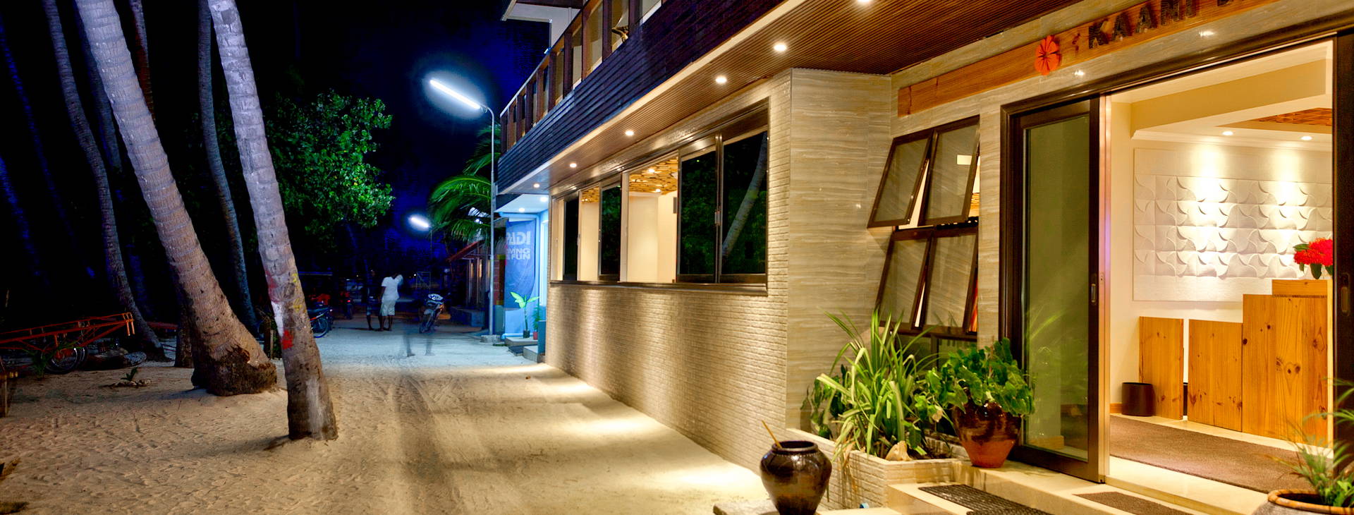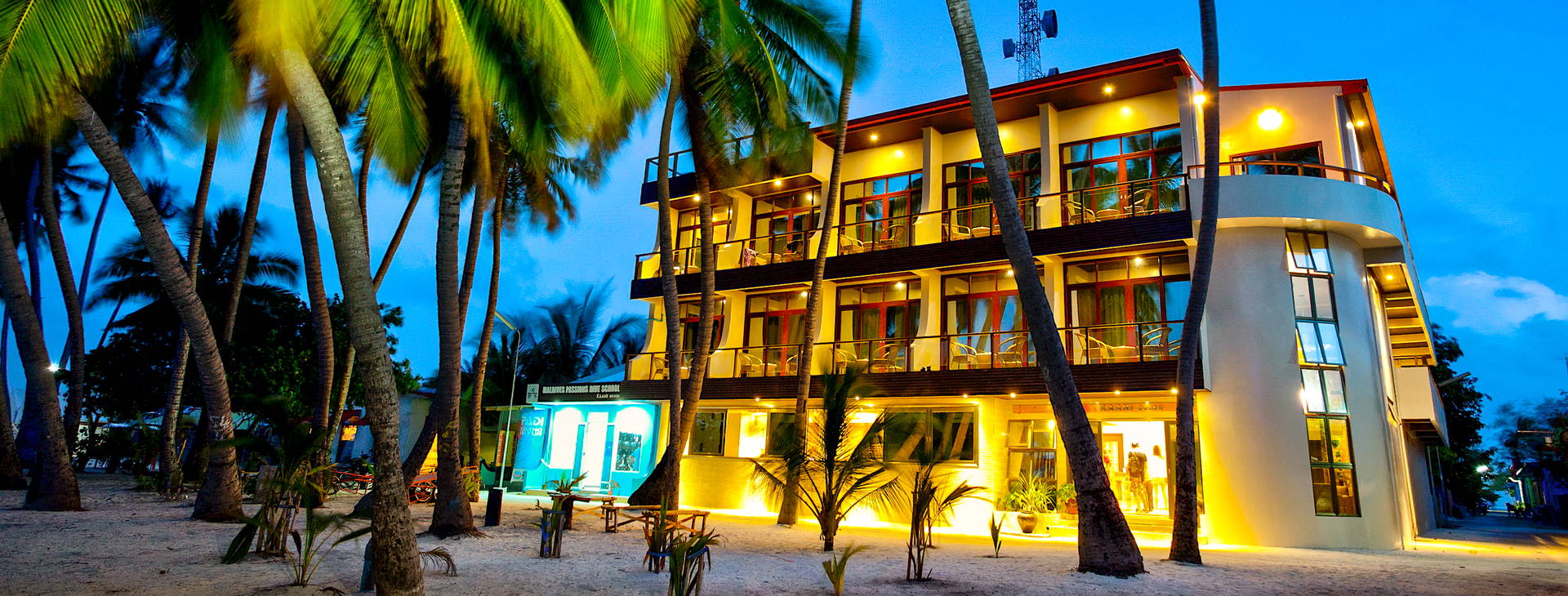 Hotel sa nachádza na ostrove Maafushi v atole Kaafu, približne 25 km od medzinárodného letiska Velana. Transfer vysokorýchlostnou loďou z letiska trvá približne 25 minút. Na ostrove platí úplný zákaz nákupu a konzumácie alkoholu.