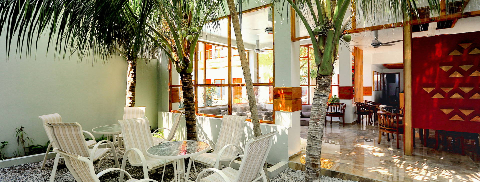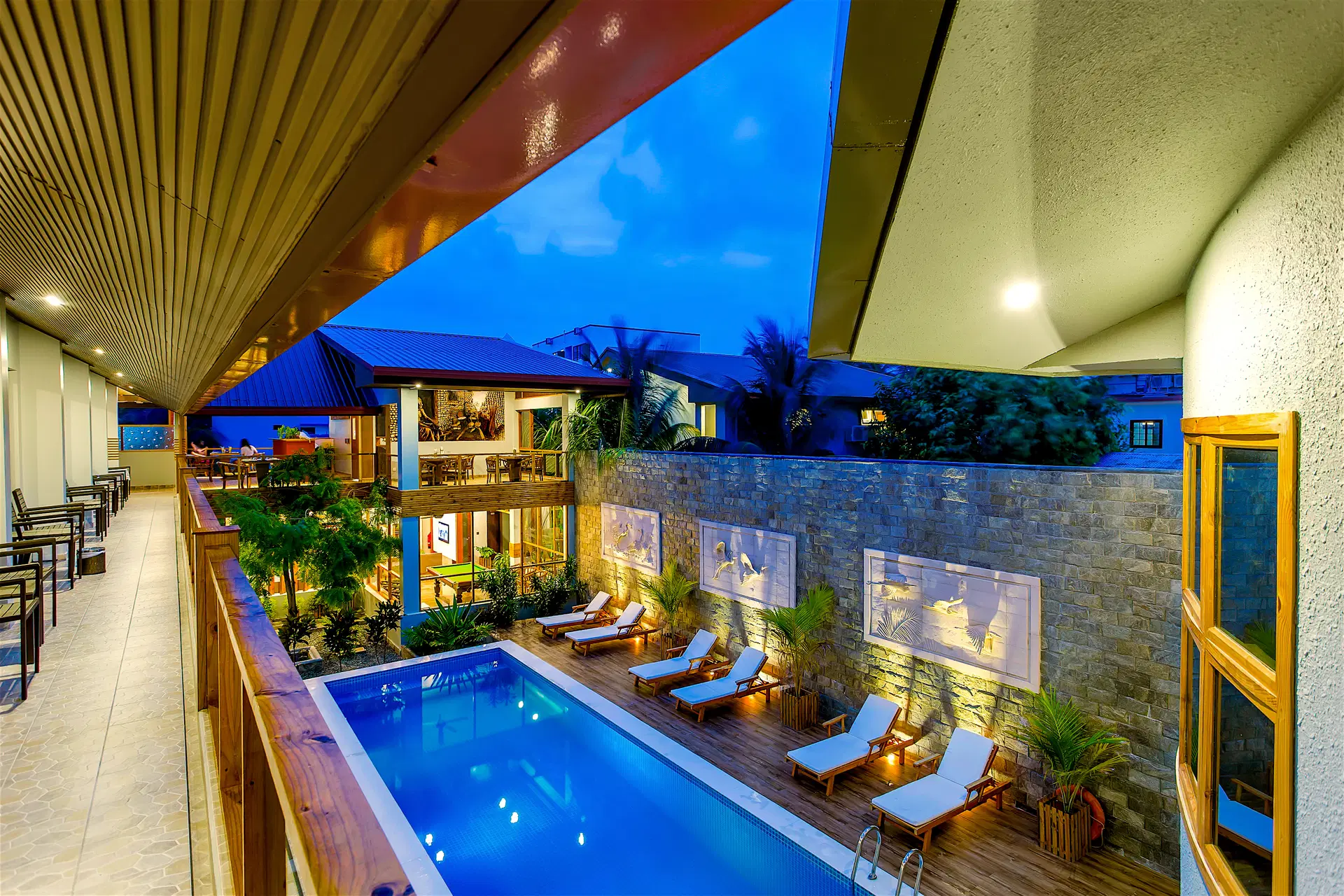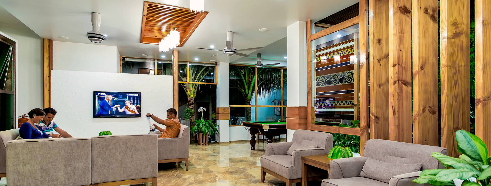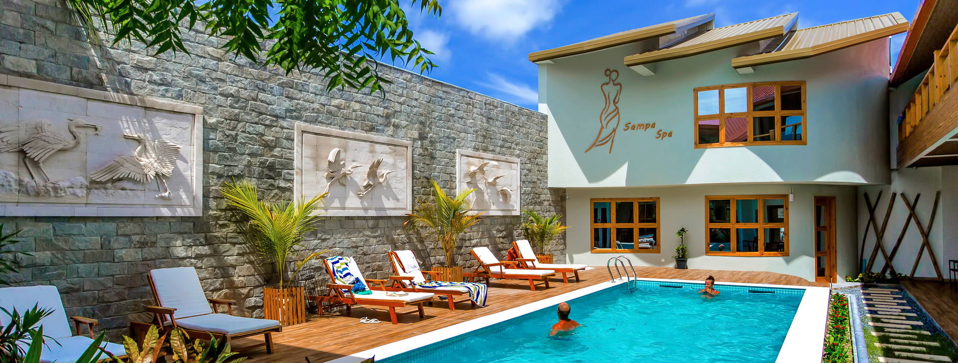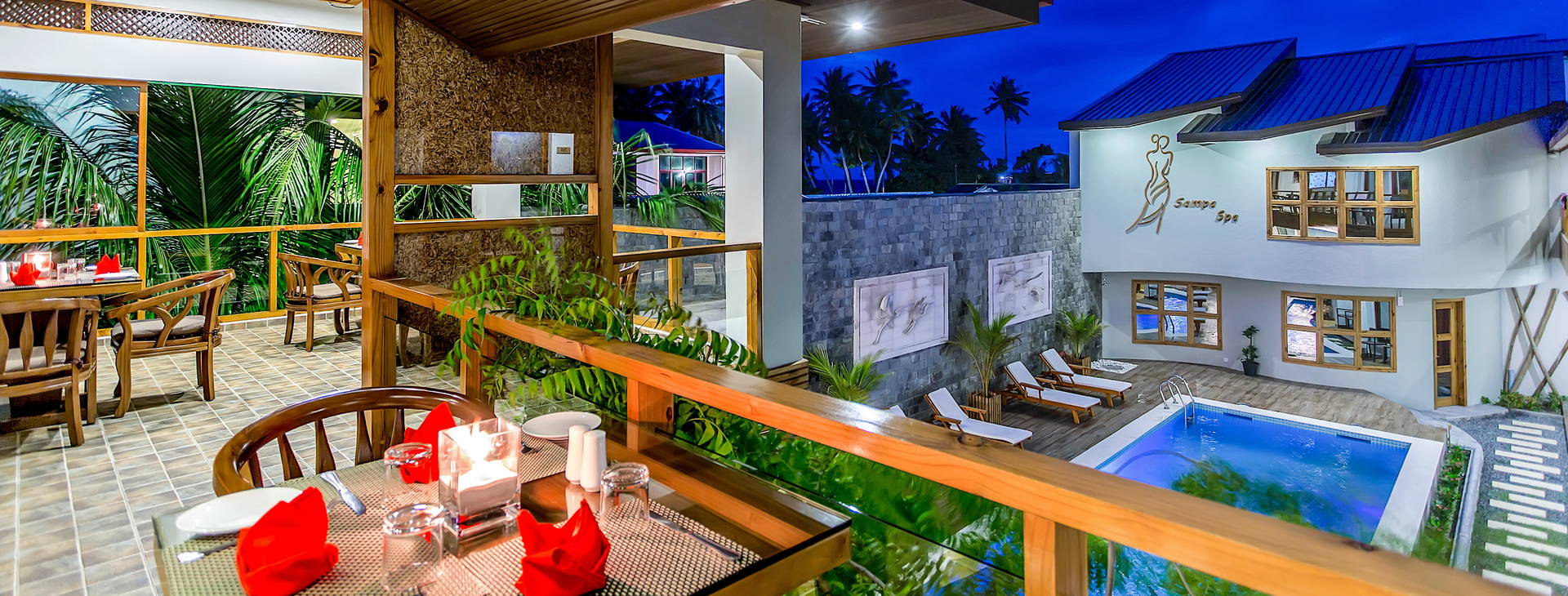 Recepcia 24/7, hotelová reštaurácia s maldivskou a medzinárodnou kuchyňou, bazén. Kúpele Sampa Spa s thajskými masážami a ošetrením tváre a tela, práčovňa a požičovňa bicyklov.