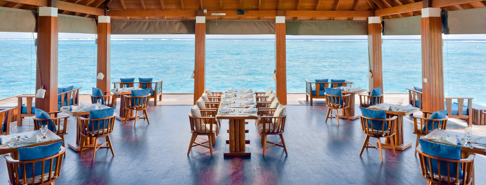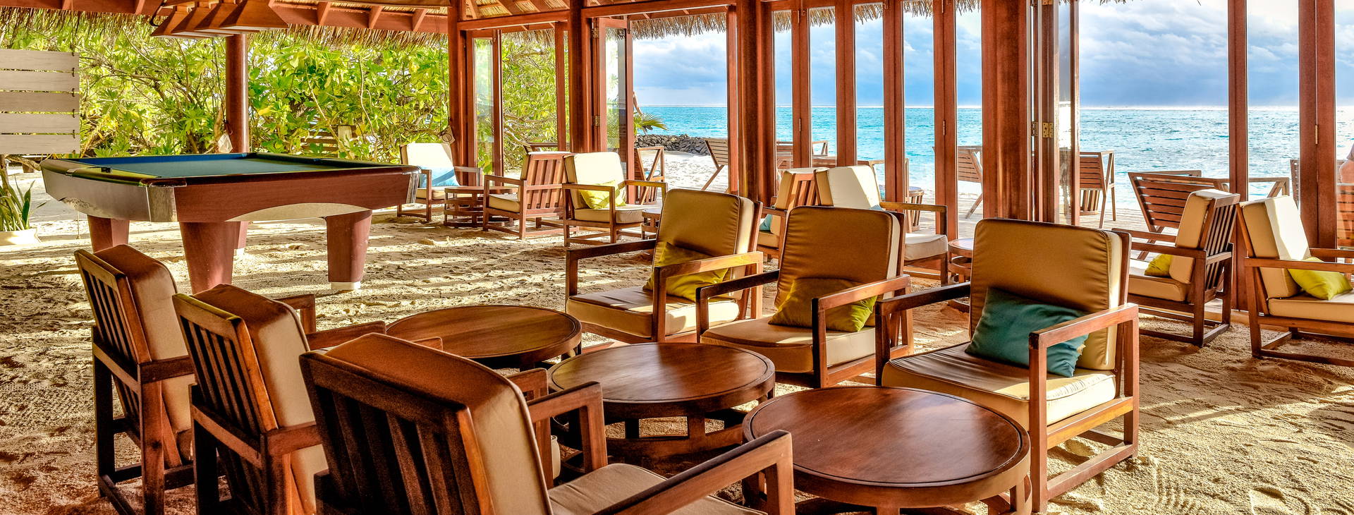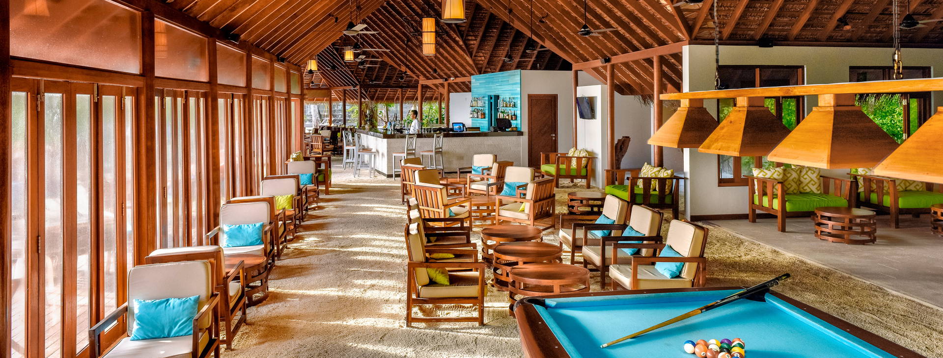 .Recepcia, hlavná reštaurácia Samuga (pre izby: záhrada, bungalov superior, superior vista a superior beach) a Hiya na terase pri oceáne (pre izby: premium beach a vily na vode), a'la carte reštaurácia (miestne špeciality, morské plody, pizza a tapas), bar Nevi. Nekonečný bazén - vytvára dojem spojenia s oceánom, ležadlá, slnečníky a osušky pri bazéne zdarma. Tiež: kúpeľné centrum, obchody so suvenírmi, občerstvením a šperkami.