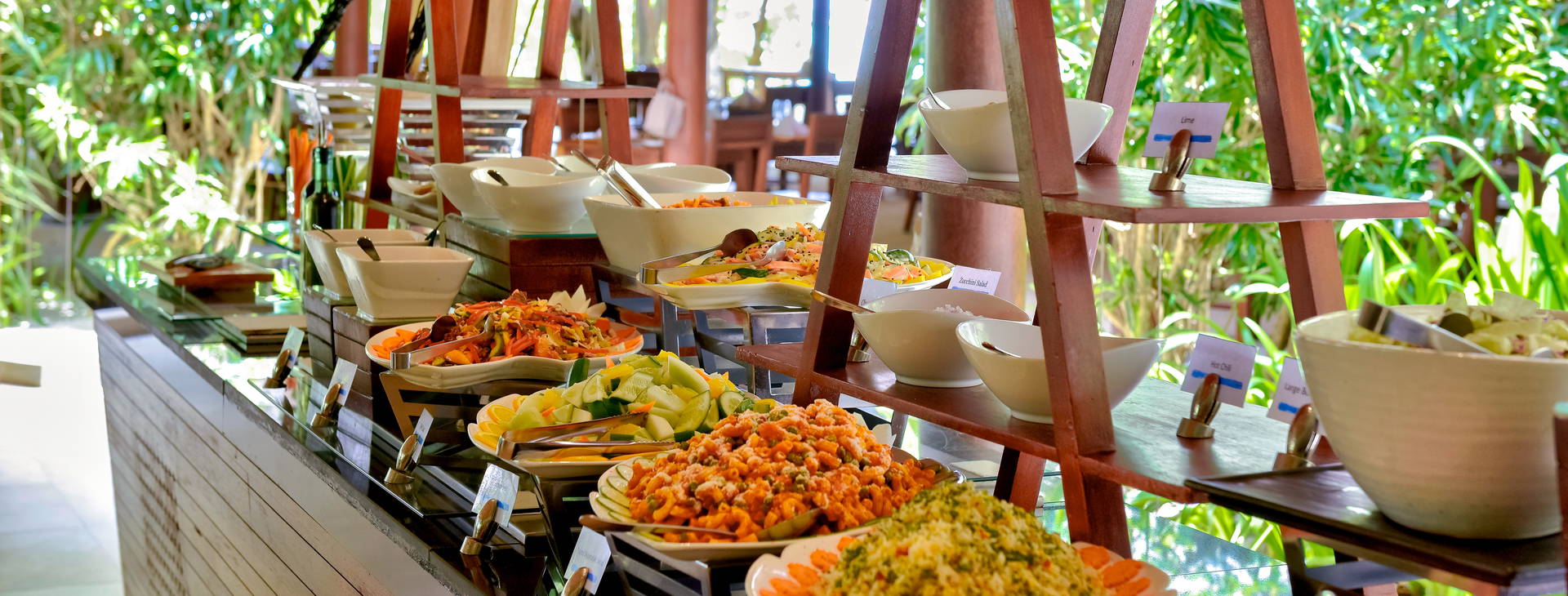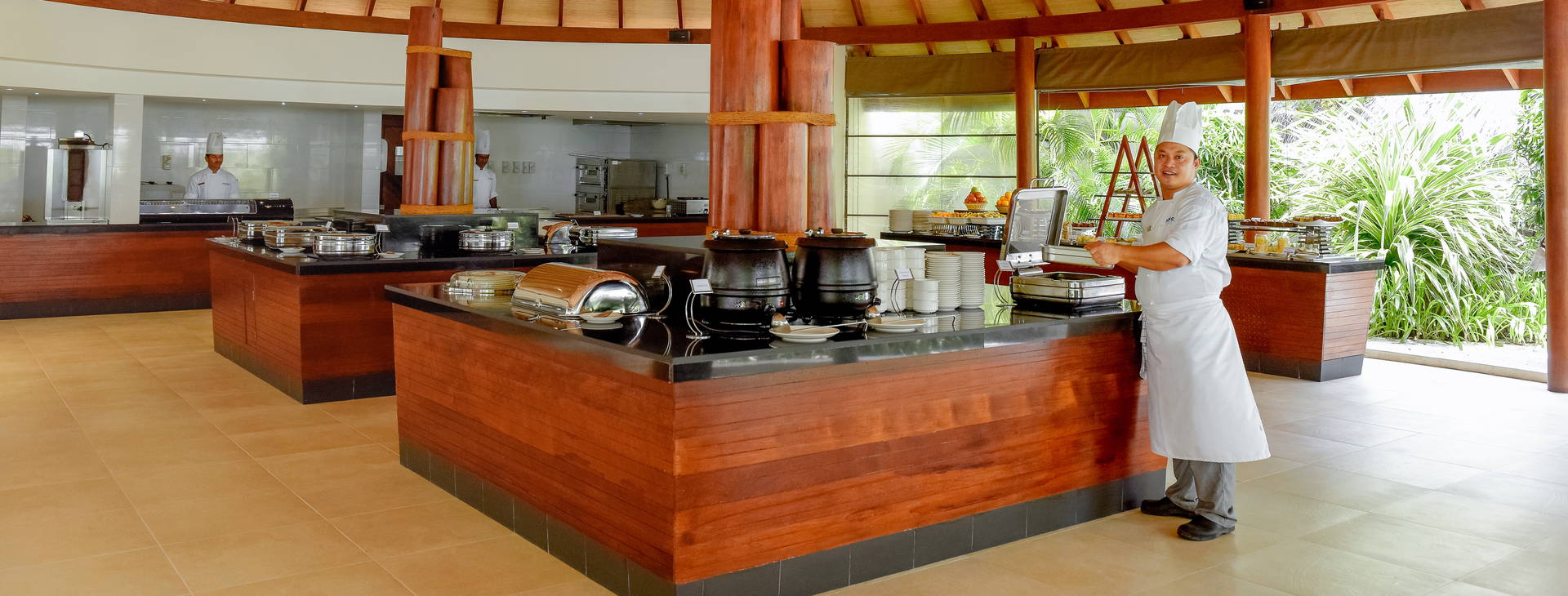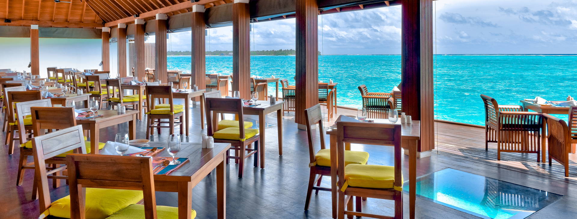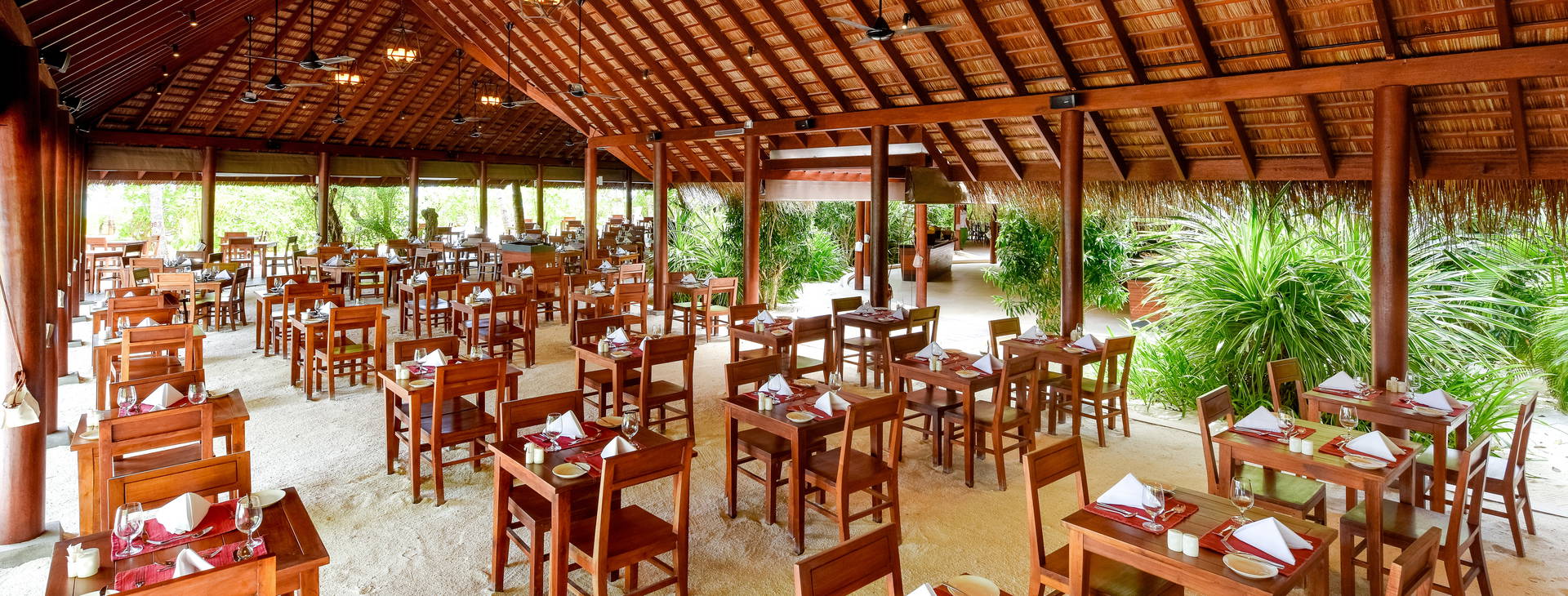 .Recepcia, hlavná reštaurácia Samuga (pre izby: záhrada, bungalov superior, superior vista a superior beach) a Hiya na terase pri oceáne (pre izby: premium beach a vily na vode), a'la carte reštaurácia (miestne špeciality, morské plody, pizza a tapas), bar Nevi. Nekonečný bazén - vytvára dojem spojenia s oceánom, ležadlá, slnečníky a osušky pri bazéne zdarma. Tiež: kúpeľné centrum, obchody so suvenírmi, občerstvením a šperkami.