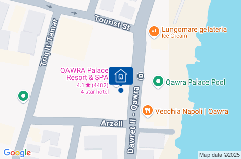 Prímo pri hoteli sa nachádza kamienková pláž - možnosť využitia hotelovej terasy. V blízkosti hotela sa nachádzajú ďalšie kamienkové pláže, napríklad pláž Qawra Point - cca 600 m od hotela, plážový servis (ležadlá, slnečníky) za poplatok cca 6 €. Na tejto pláži sa nachádza aj maltské národné akvárium.