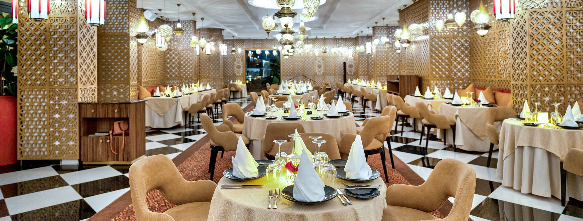 All Inclusive: raňajky (7:00-11:00), večera (19:00-22:00). Hotel má 3 reštaurácie - Le V bufet, Mima Kitchen (marocká kuchyňa), LeSensya (talianska kuchyňa). Okrem toho sa tu nachádza niekoľko barov a salónik Chay Lounge, kde môžu hostia ochutnať širokú škálu jedinečných čajov.
