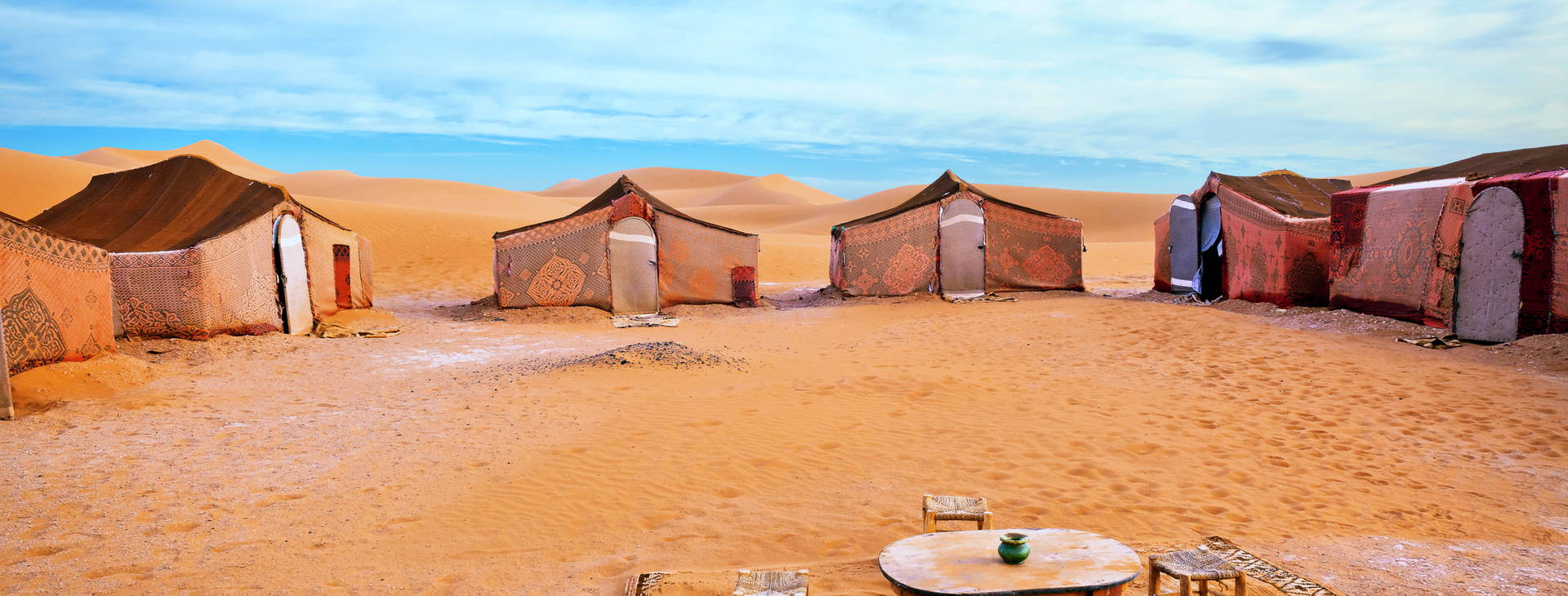 Po snídani se vydáme směrem k Sahaře; po příjezdu do města Foum Zgouid opustíme asfalt a budeme pokračovat pouštní divočinou, bývalou trasou Rallye Paříž-Dakar. Přenocujeme ve stanech v táboře v dunách Chigagga a večeři doprovodí živá nomádská hudba. Při západu slunce, nepovinně, vás pozveme na projížďku na velbloudech a obdivování západu slunce nad Saharou. (Výlet za příplatek u pilota cca 40 EUR/osoba). (Trasa cca 170 km)