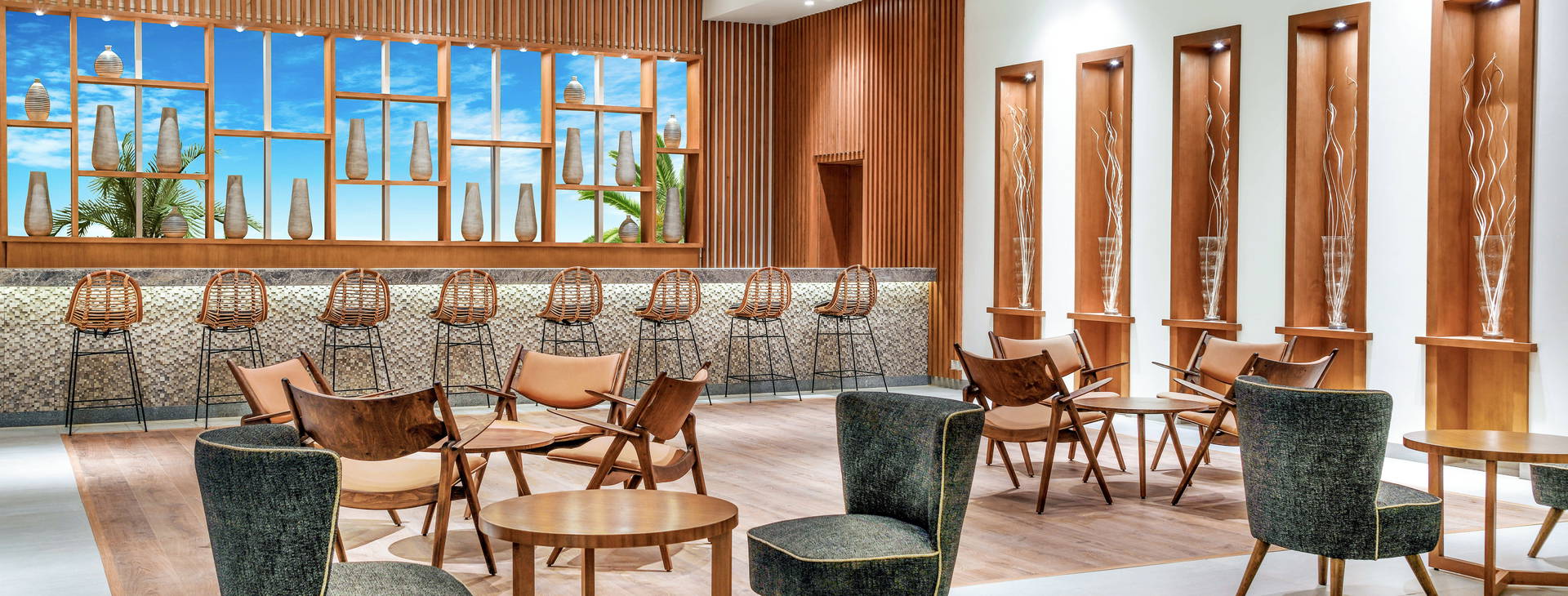 Recepcia, zmenáreň, bankomat, hlavná reštaurácia s vonkajšou terasou, a'la carte reštaurácia na pláži (za poplatok na mieste), bar pri bazéne, záhrada. V dobre udržiavanom areáli sa nachádzajú 2 bazény (jeden v zimnej sezóne vyhrievaný). Za príplatok: lekár a práčovňa.