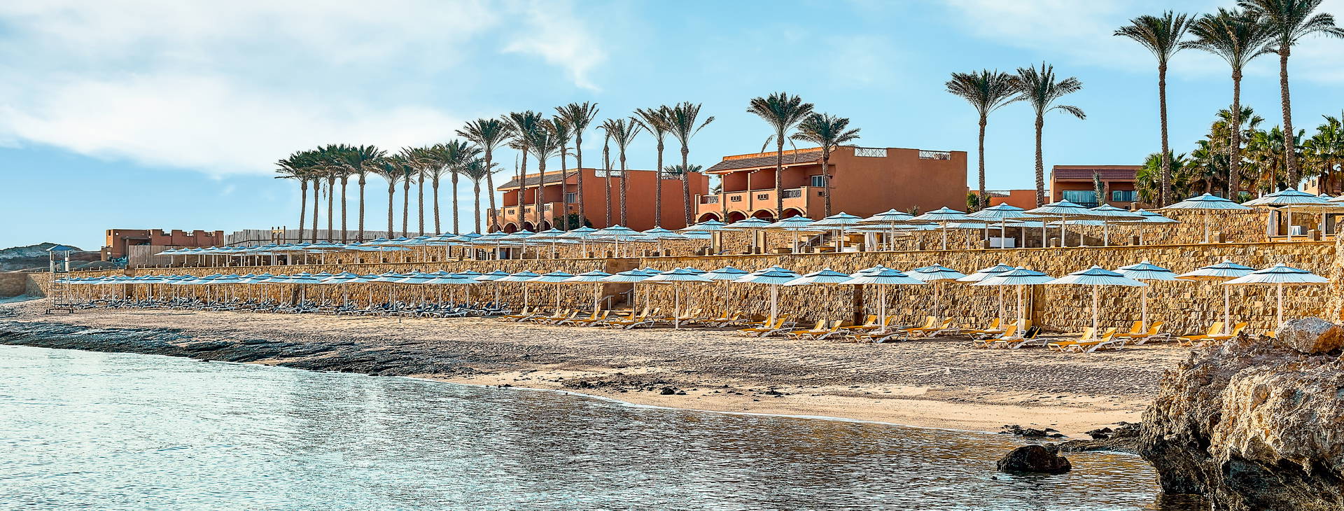 Hotel sa nachádza na súkromnej piesočnato-kamienkovej pláži s prístupom ku korálovému útesu (mierny svah do mora, mólo, odporúčame bezpečnostnú obuv). Ležadlá, slnečníky a osušky na pláži - zdarma.