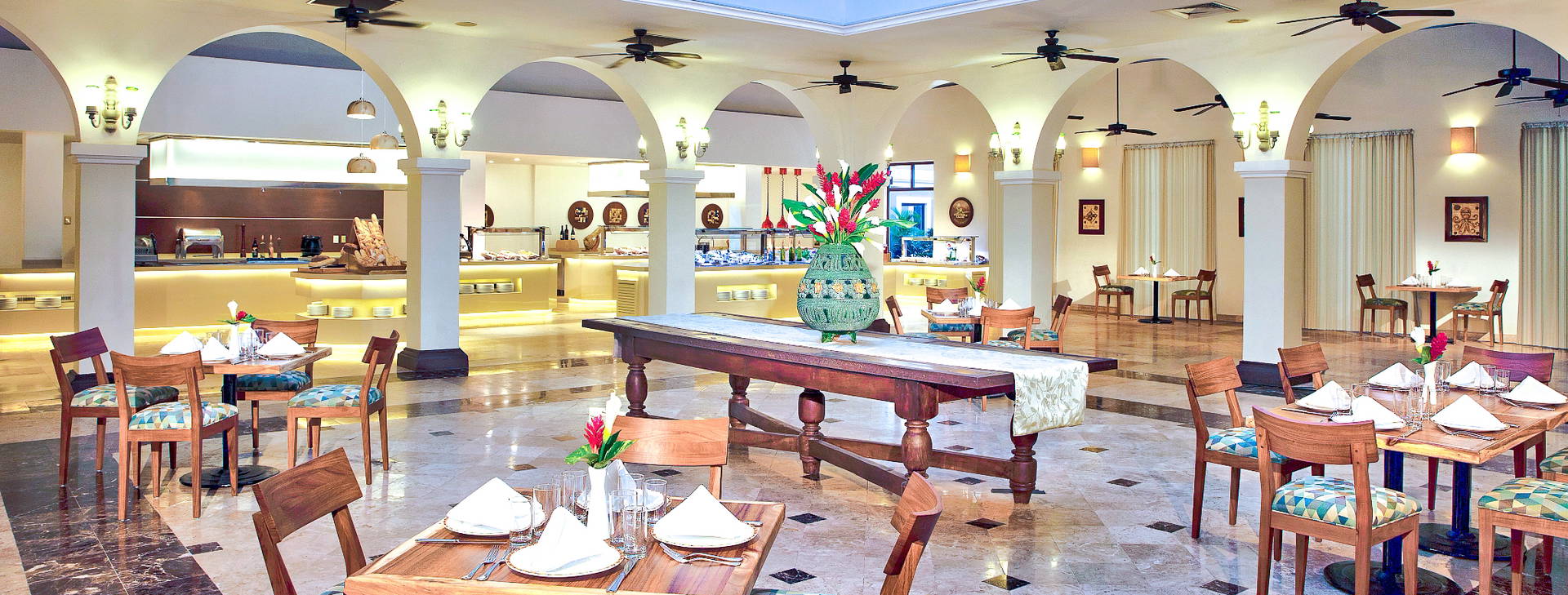 All Inclusive: raňajky, obedy a večere formou bufetu v hlavnej reštaurácii, občerstvenie počas dňa. Šesť reštaurácií a la carte: francúzska, mexická, ázijská, japonská, talianska, s morskými plodmi. Kaviareň s ponukou rôznych druhov kávy, čajov a zákuskov. Neobmedzené množstvo nealkoholických a alkoholických nápojov (miestnych a medzinárodných) v celom hoteli (10:00 - 01:00).