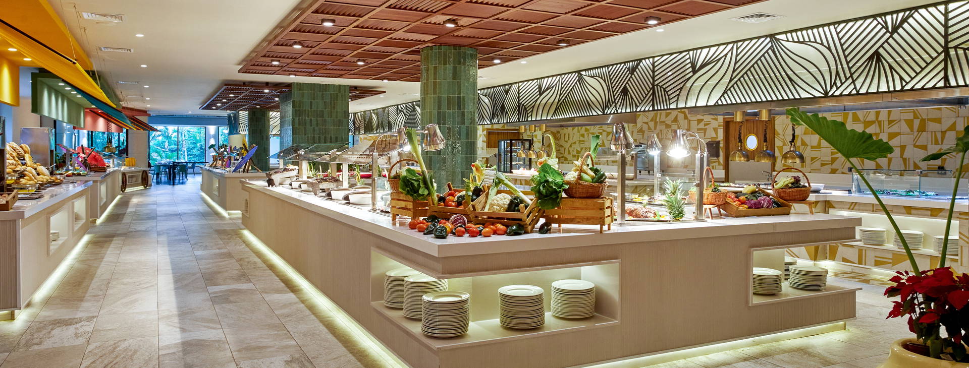 .All Inclusive: raňajky (07:00 - 10:30), obed (13:00 - 15:00), večera (17:30 - 22:00 / 22:30) formou bufetu. Okrem toho neobmedzené využívanie reštaurácie a'la carte (nutná predchádzajúca rezervácia). Miestne alkoholické nápoje (do 02:00), občerstvenie a nealkoholické nápoje podávané vo vyhradených priestoroch (24 hodín).