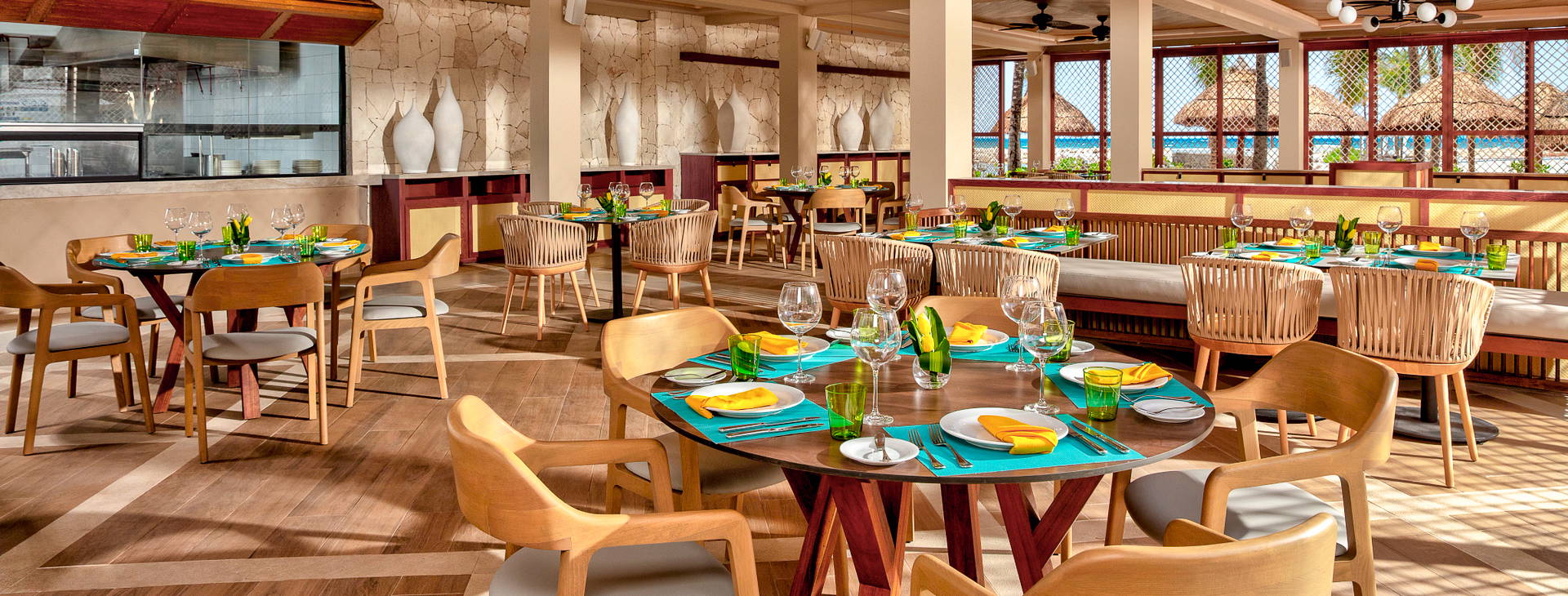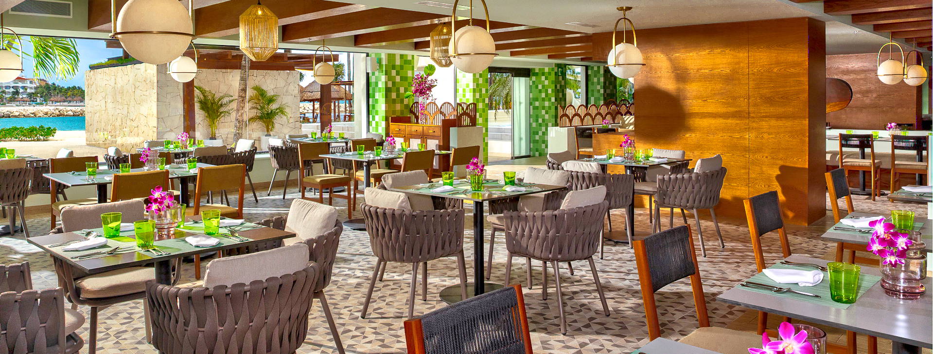 All Inclusive: raňajky, obedy a večere formou bohatého bufetu v hlavnej reštaurácii (medzinárodné jedlá a jedlá z grilu); 4 reštaurácie a'la carte (bez predchádzajúcej rezervácie): rybia a morské plody, mexická, talianska, sushi bar, grill bar, občerstvenie počas dňa; neobmedzené množstvo prémiových alkoholických a nealkoholických nápojov v celom hoteli vrátane plážového baru (10:00-01:00). Hotel ponúka aj bezlepkové jedlá.
