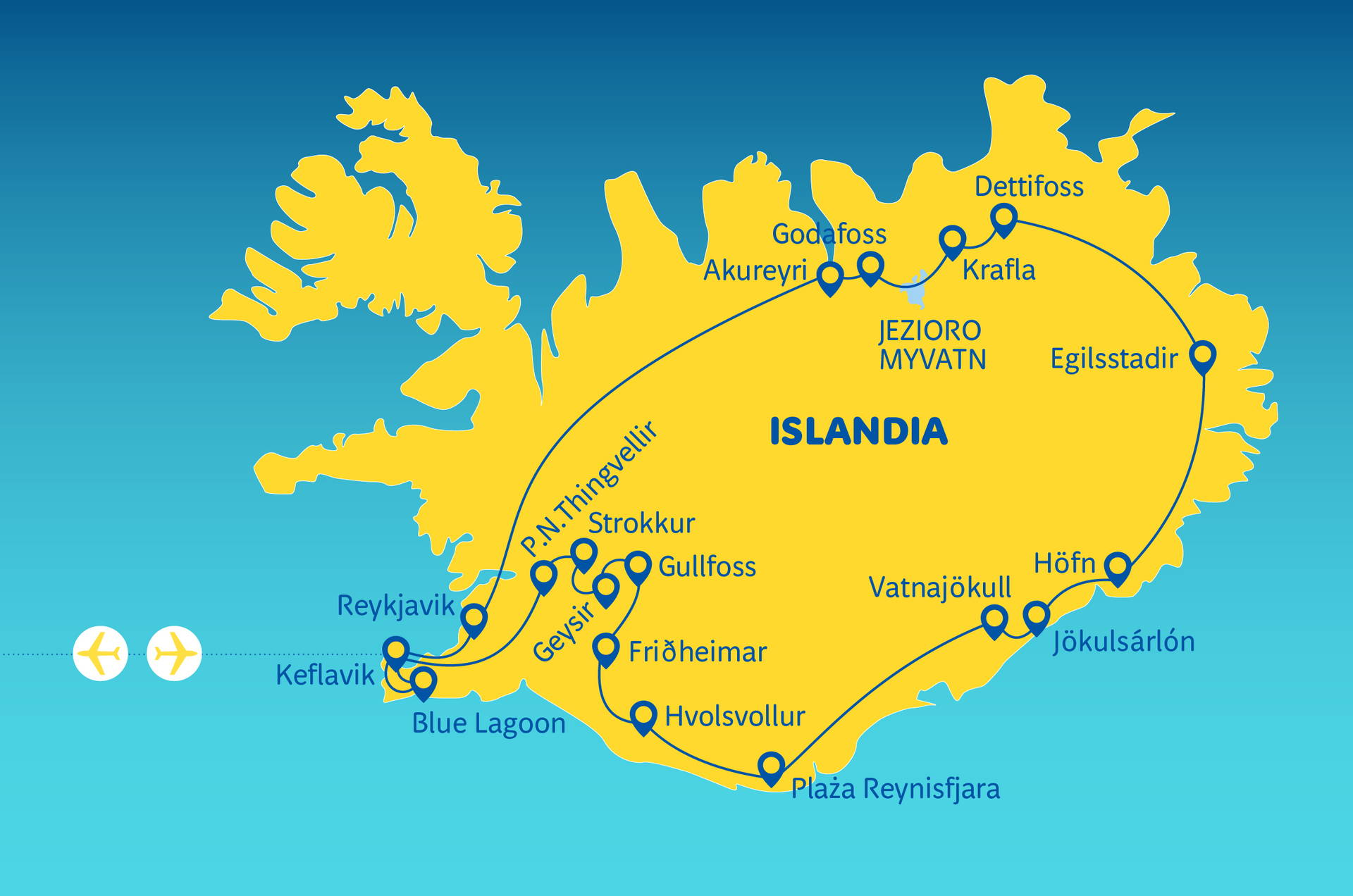 Název zájezdu v polském jazyce: Dookoła Islandii