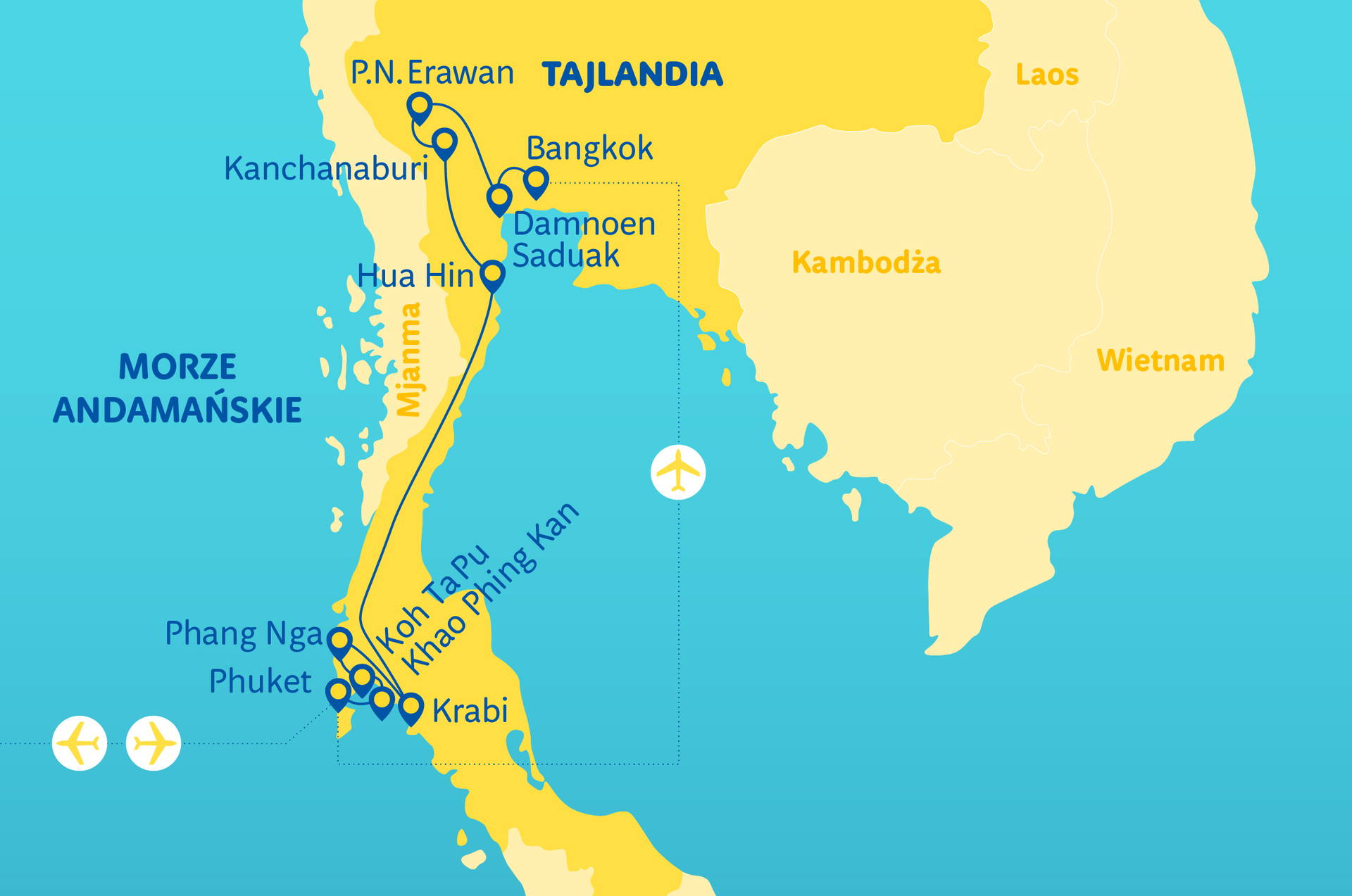 Základní cena zahrnuje: přelet charterovým letadlem společnosti LOT (přímý let) na trase Polsko - Phuket a Phuket - Polsko, přelet místními linkami na trase Phuket - Bangkok, letištní taxy, transfery: letiště - hotel - letiště, ubytování v hotelech (14 nocí), transfery klimatizovaným autokarem na území Thajska, stravování dle programu (14 snídaní, 2 obědy, 5 večeří), služby polského zástupce během odbavení na letišti v Polsku, služby polského delegáta v Thajsku, turistický program (viz níže), pojištění TU Europa varianta základní (úrazové pojištění a léčebné výlohy, trvalé následky, asistenční služby a pojištění zavazadel).