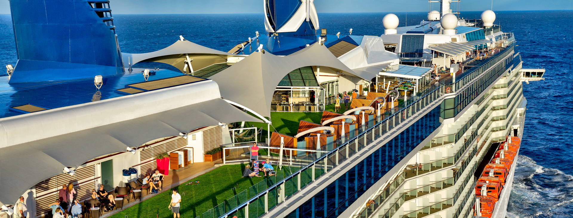 Podlaha na lodi je v rozmedzí 1,5 až 2,5 m. Vybavenie na palube- The Lawn Club - skutočný trávnik na relaxáciu pod holým nebom