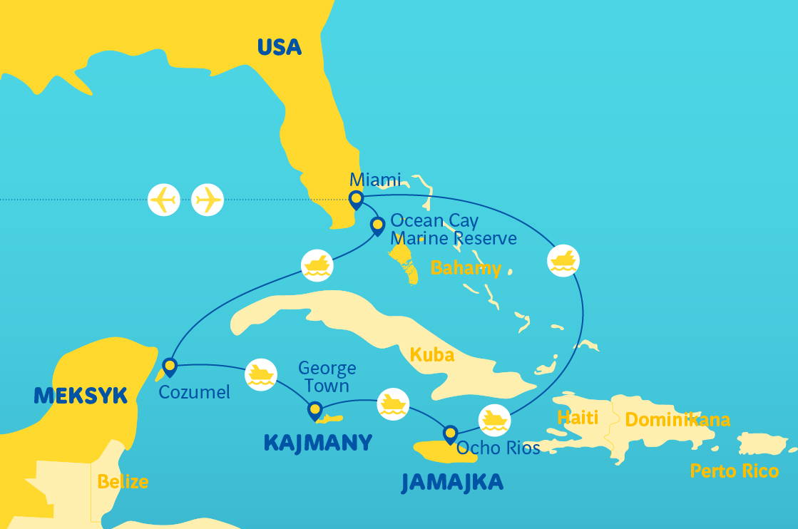 Cena zahrnuje: (možná mezipřistání), ubytování (celkem 7 nocí) na lodi MSC Cruises,1 noc v blízkosti Miami v hotelu **/*** se snídaní, využití většiny atrakcí na lodi ,transfery: (kromě alkoholických a lahvových nápojů), péče polského lodivoda, přístavní poplatky, servisní poplatky, pojištění optimální varianty (TU Europa (NNW, KL a zavazadla).
