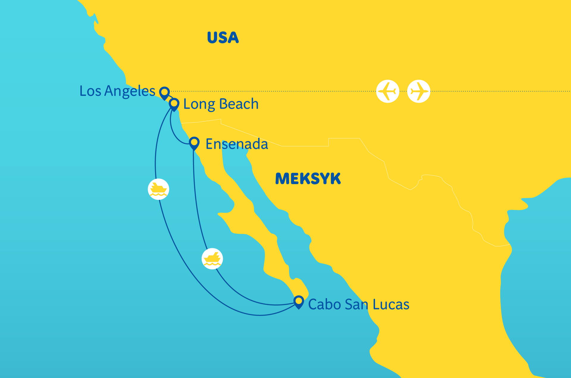 Cena nezahrnuje:víza do USA, alkoholické a lahvové nápoje během plavby, zálohu min. 1,5 mil. 200 USD splatnou první den plavby (v hotovosti nebo kartou), povinný balíček splatný lodivodovi na místě (vstupné v Los Angeles, poplatky za služby na lodi, spropitné, TGS) ve výši cca 460 USD/osoba, fakultativní výlety během plavby, poplatek za palubní služby (cca 20 EUR na osobu/den), obvyklé spropitné a další osobní výdaje a jiné náklady, které nejsou zahrnuty výše.