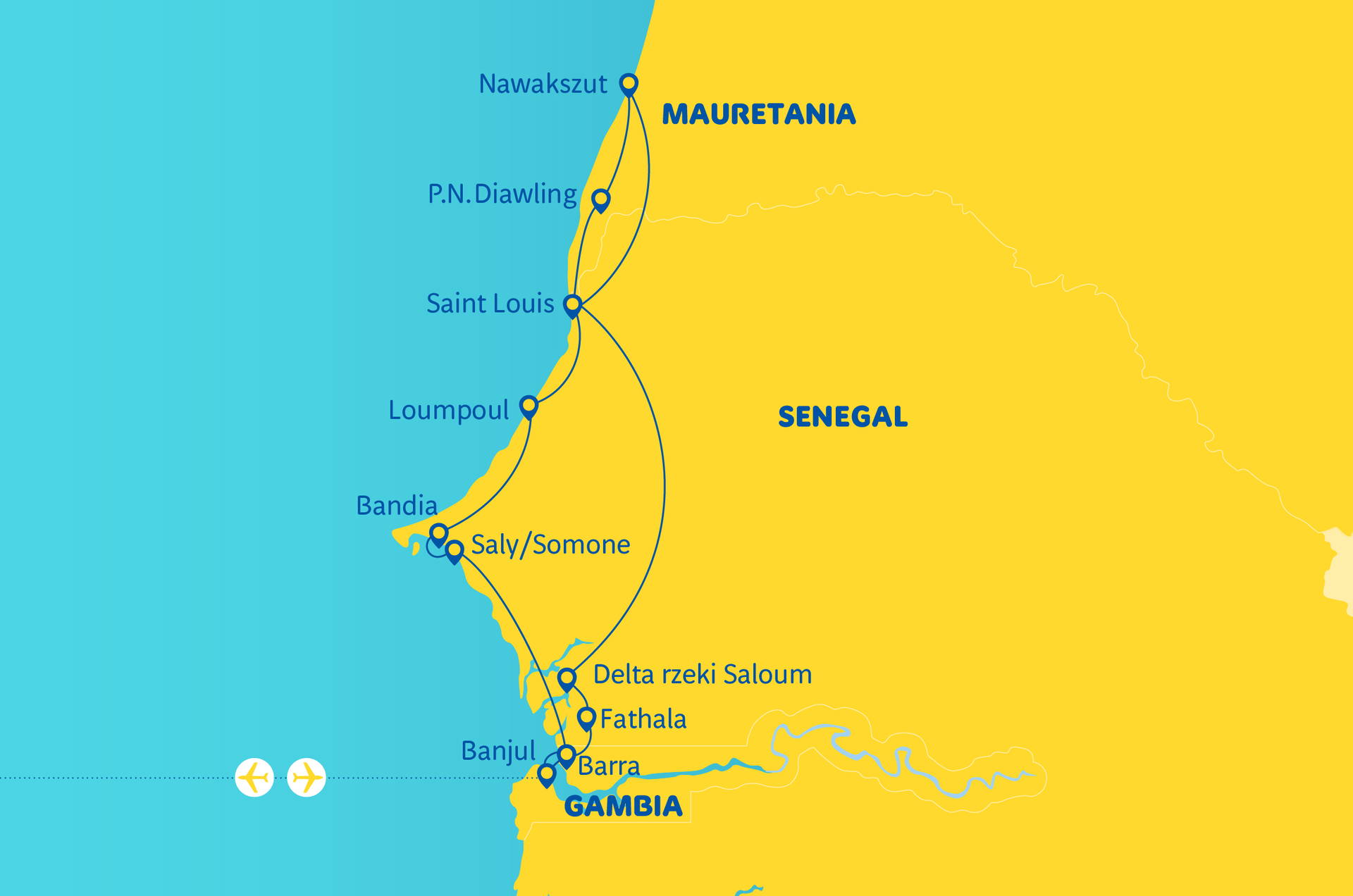Cena zahrnuje: let charterovým letadlem, letištní poplatky, ubytování v hotelech podle popisu ve dvoulůžkových pokojích (s možností přistýlky), stravování: snídaně a večeře, turistický program, transfery letiště - hotel - letiště, přeprava 18-20 osob autobusem (střešní nosič) s klimatizací, služby polského zástupce při odbavení na letišti v Polsku, průvodce - doprovod skupiny během prohlídky Senegalu a Gambie, místní průvodce - doprovod skupiny, místní průvodci, balíček pojištění TU Europa (úrazové pojištění a léčebné výlohy, trvalé následky, asistenční služby a pojištění zavazadel).