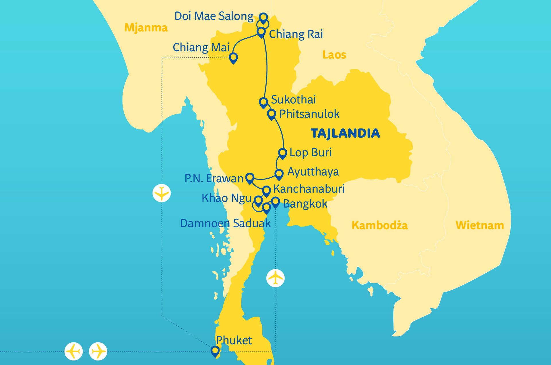 Cena zahrnuje:Čarterový let společnosti LOT (bez mezipřistání) z Polska na Phuket a z Phuketu do Polska, letištní poplatky, vnitřní přelety, ubytování v hotelu, transfery klimatizovaným autokarem, stravování dle programu, služby polského zástupce při odbavení na letišti v Polsku, dohled polského pilota během prohlídky, výše uvedený turistický program a pojištění TU Europa (základní varianta: NN NN, KL, Asistence a zavazadla). Cena nezahrnuje: vstupné na prohlídky, projížďky lodí, jízdu rikšou apod. poplatky pro místní průvodce, spropitné pro řidiče, nosiče zavazadel, číšníky, hotelový personál apod (vč. vstupného, průvodců, jízdy rikšou apod.). (celkem vstupné, průvodci, projížďky lodí a spropitné cca 260 USD/osoba, platí se pilotovi na místě), další jídla během zájezdu, nápoje k jídlu, fakultativní výlety a další osobní výdaje.