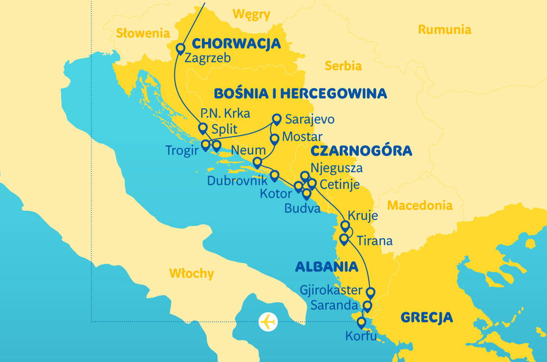 Bouřlivá historie Balkánu - Chorvatsko, Bosna a Hercegovina, Černá Hora, Albánie - nejkrásnější z řeckých ostrovů - Korfu - UNESCO: Mostar, Dubrovník, Kotor, Budva a Gjirokastër - perly přírody: okouzlující balkánské pobřeží, Národní park Krka, fjordy jižní Evropy a pramen Blue Eye