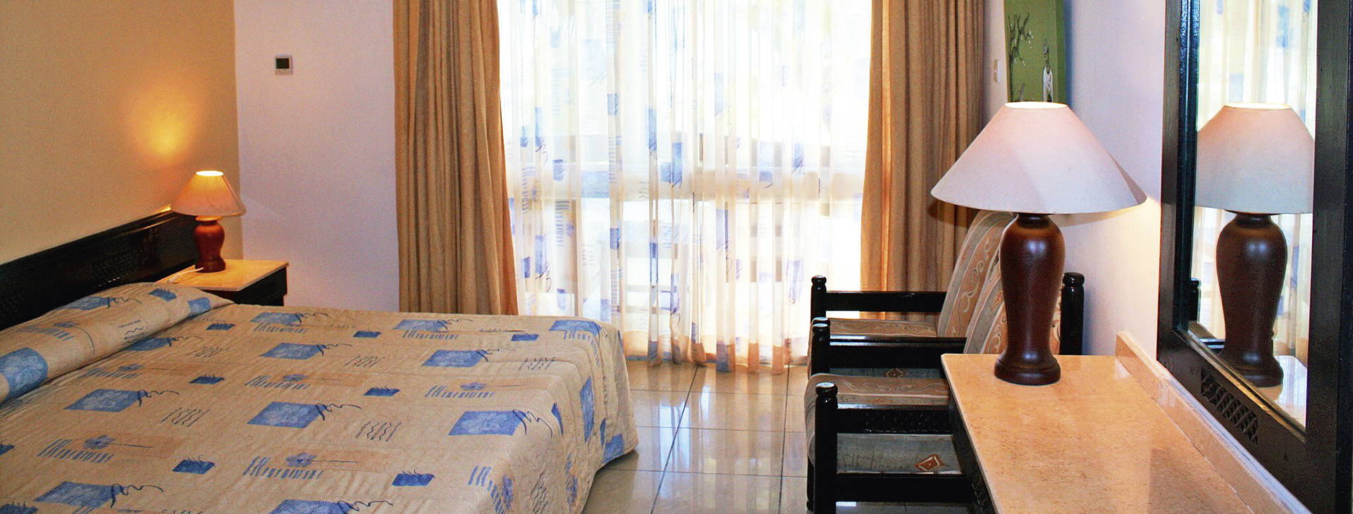 Hotelový komplex kombinuje jednoduchý africký štýl s jednoduchou architektúrou. Štandardné izby sú umiestnené v dvojposchodových budovách smerom k oceánu. Skromné, ale útulne zariadené štandardné izby môžu ubytovať max. tri dospelé osoby alebo dve dospelé osoby a jedno dieťa na prístelke. Izby sú vybavené kúpeľňou so sprchou alebo vaňou, sušičom vlasov, individuálne riadenou klimatizáciou, SAT TV, telefónom, trezorom, mini chladničkou, balkónom alebo terasou.