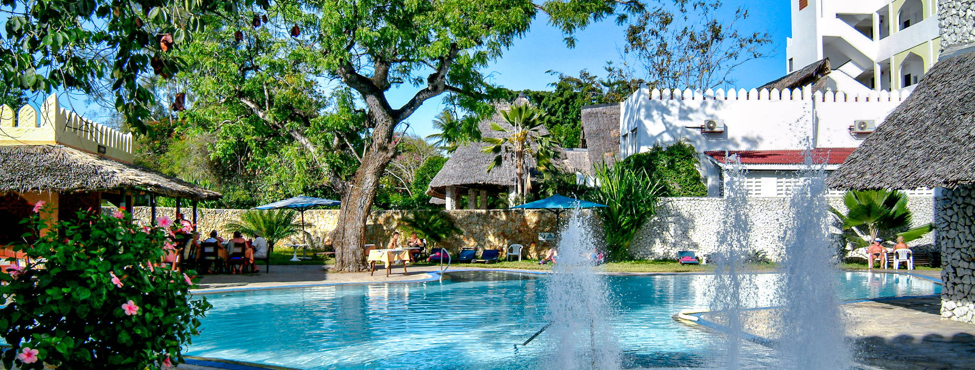 Recepcia, tri reštaurácie: hlavná reštaurácia Ziwani ponúka medzinárodnú kuchyňu, orientálna a vegetariánska reštaurácia a'la carte Karibu Grill podáva grilované mäso a ryby, reštaurácia a'la carte Fisherman 's Cave servíruje hlavne morské plody (špeciálne zľavy pre hotelových hostí). Štyri bary: hlavný bar Dhow otvorený 24 hodín denne, Karibu (10:00-23:30), Ziwani pri bazéne (10:00-23:30) a bar s občerstvením po celý deň. Dva bazény so sladkou vodou (jeden s jacuzzi) a detský bazén pre deti. Navyše: zmenáreň, TV miestnosť, obchod so suvenírmi, konferenčná miestnosť.