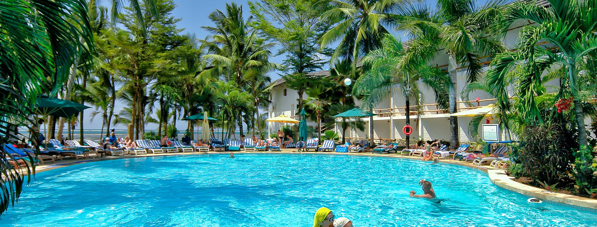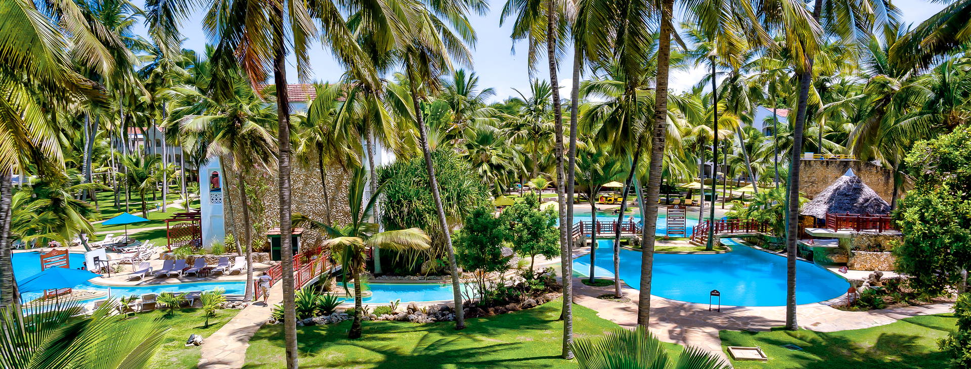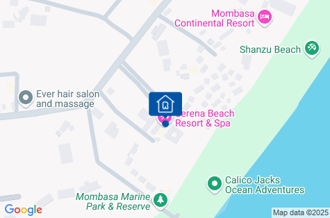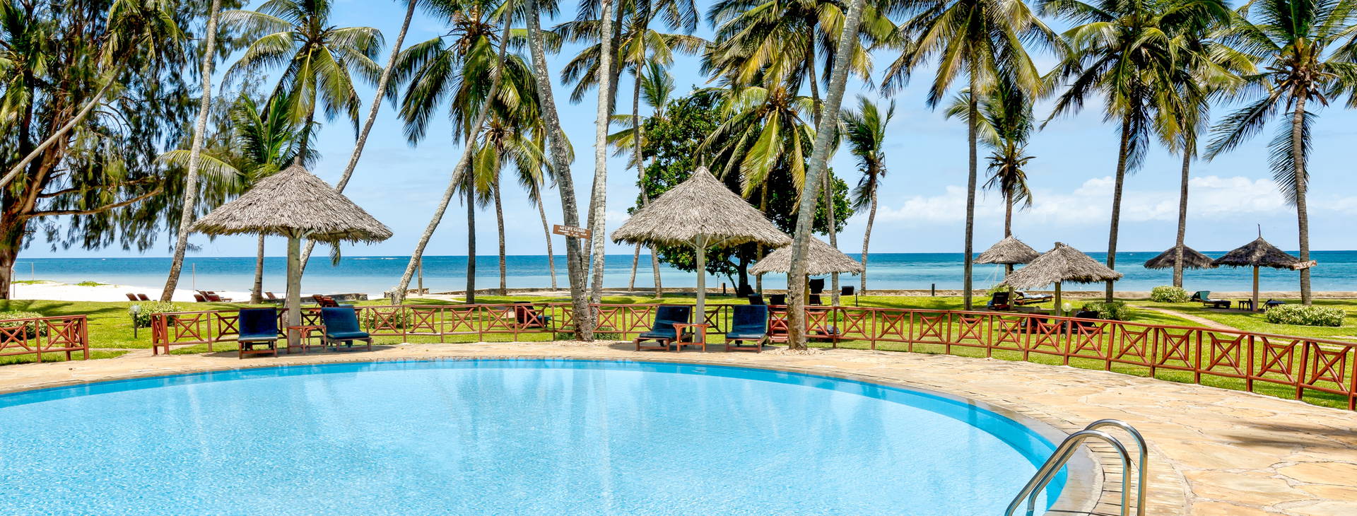 Elegantný, pohodlný hotel v africkom svahilskom štýle obklopený krásnou a dokonale udržiavanou tropickou záhradou. Nachádza sa na južnom pobreží Mombasy, približne 40 km od centra mesta a približne 45 km od letiska.