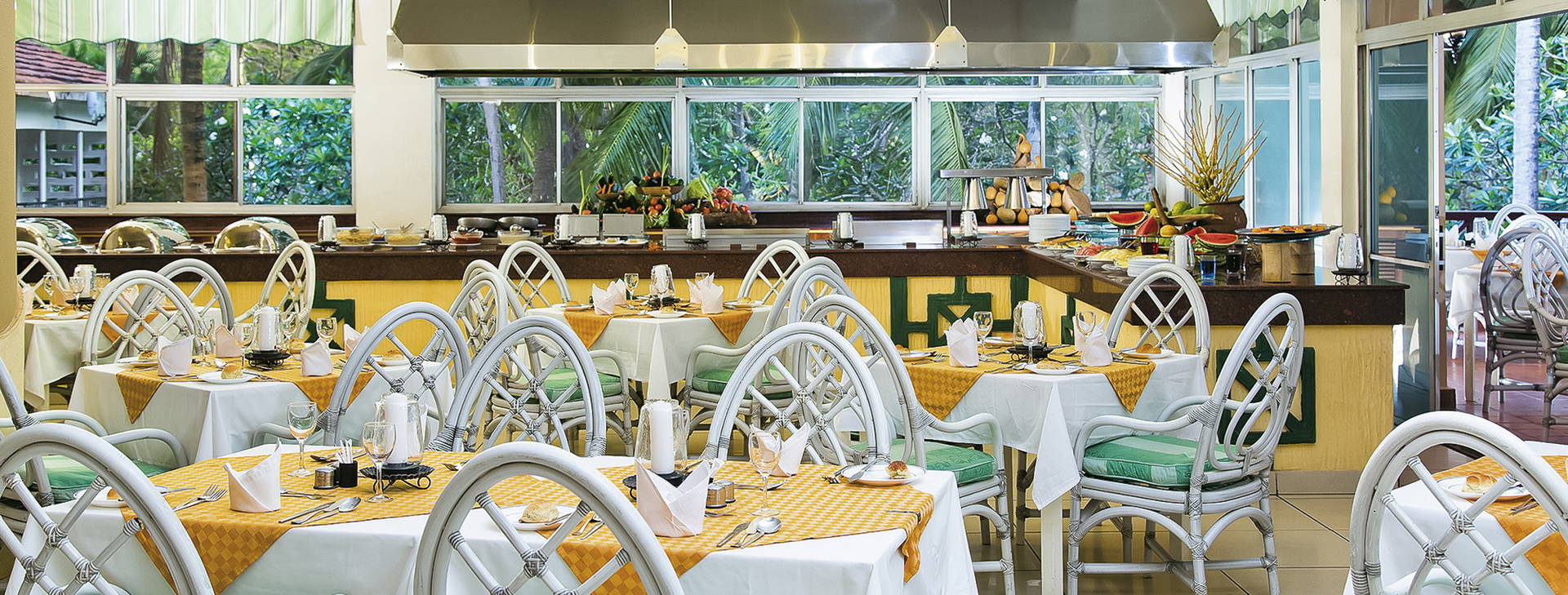 All Inclusive: raňajky (07:00-10:00), obed (12:00-15:00) a večera (19:00-22:00) plus občerstvenie (10:00-18:00). Všetky jedlá sa podávajú formou bufetu a na úrovni medzinárodnej kuchyne. V čase od 10:00 do 15:00 je možné objednať si jedlá a'la carte (za príplatok). Okrem toho je k dispozícii bar pri bazéne a na recepcii (10:00-24:00), kde sa podávajú miestne nealkoholické a alkoholické nápoje.