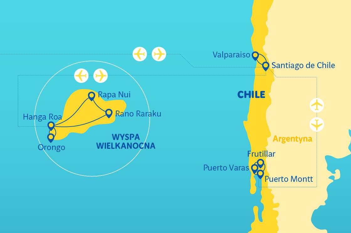 Cena zahrnuje let z Varšavy do Santiaga de Chile a ze Santiaga de Chile do Varšavy (přes jedno z evropských letišť, možnost dalšího mezipřistání), vnitřní lety, letištní poplatky, transfery: letiště - hotel - letiště, výše uvedený program, ubytování v hotelech dle popisu (započato 9 hotelových nocí), stravování dle programu: snídaně nebo snídaňový box, kurýrní služba, balíček pojištění TU Europa (NNW, KL, asistenční služby a zavazadla).