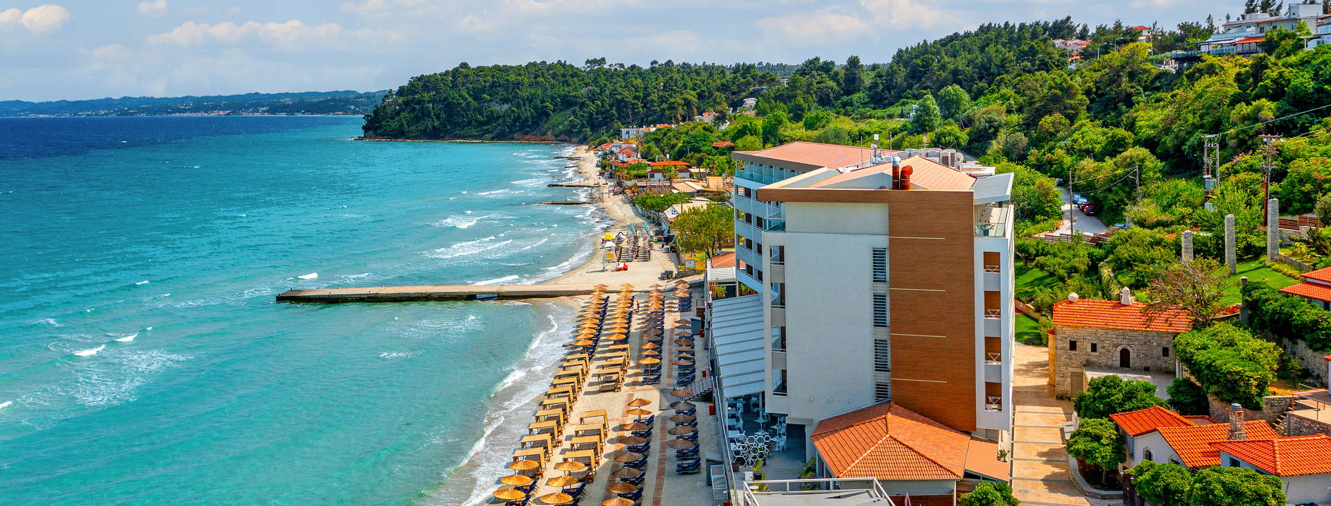 Ammon Zeus sa môže pochváliť výnimočnou polohou priamo na krásnej piesočnatej pláži. Tento 5-hviezdičkový hotel, kompletne zrekonštruovaný v roku 2018, sa nachádza približne 250 metrov od centra letoviska Kallithea, jedného z najobľúbenejších dovolenkových miest na Chalkidiki. Za niekoľko minút sa dostanete k obchodom, reštauráciám, barom alebo kaviarňam. V blízkosti sa nachádzajú veľmi obľúbené nočné kluby a diskotéky. Transfer z letiska do hotela trvá približne 1 hodinu a 45 minút.