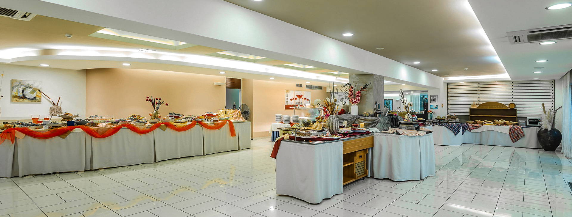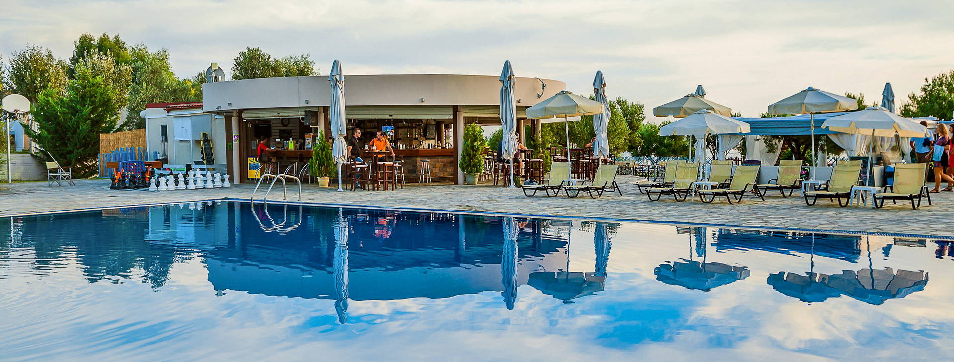 All inclusive: raňajky, obedy a večere formou bufetu podávané v hlavnej reštaurácii. Prestávka na kávu (káva, čaj, občerstvenie). Neobmedzené množstvo nealkoholických a miestnych alkoholických nápojov podávaných od 9:00 do 23:00 (pivo, víno, ouzo, tsipouro, brandy, koktaily). Je možné si priplatiť za ULTRA All Inclusive v cene 8 EUR/deň/dospelý a 5 EUR/deň/dieťa.